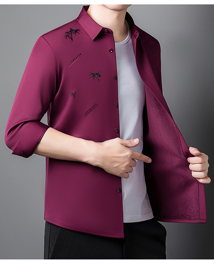 2024 가을과 겨울 새로운 남자 기모 두꺼운 셔츠 사업 원활한 셔츠 다림질없는 베이스 셔츠