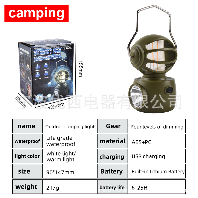 국경 간 캠핑 조명 usb 충전식 야외 창조적 인 분위기 조명 캠프 조명 led 다기능 강한 손전등 텐트 조명