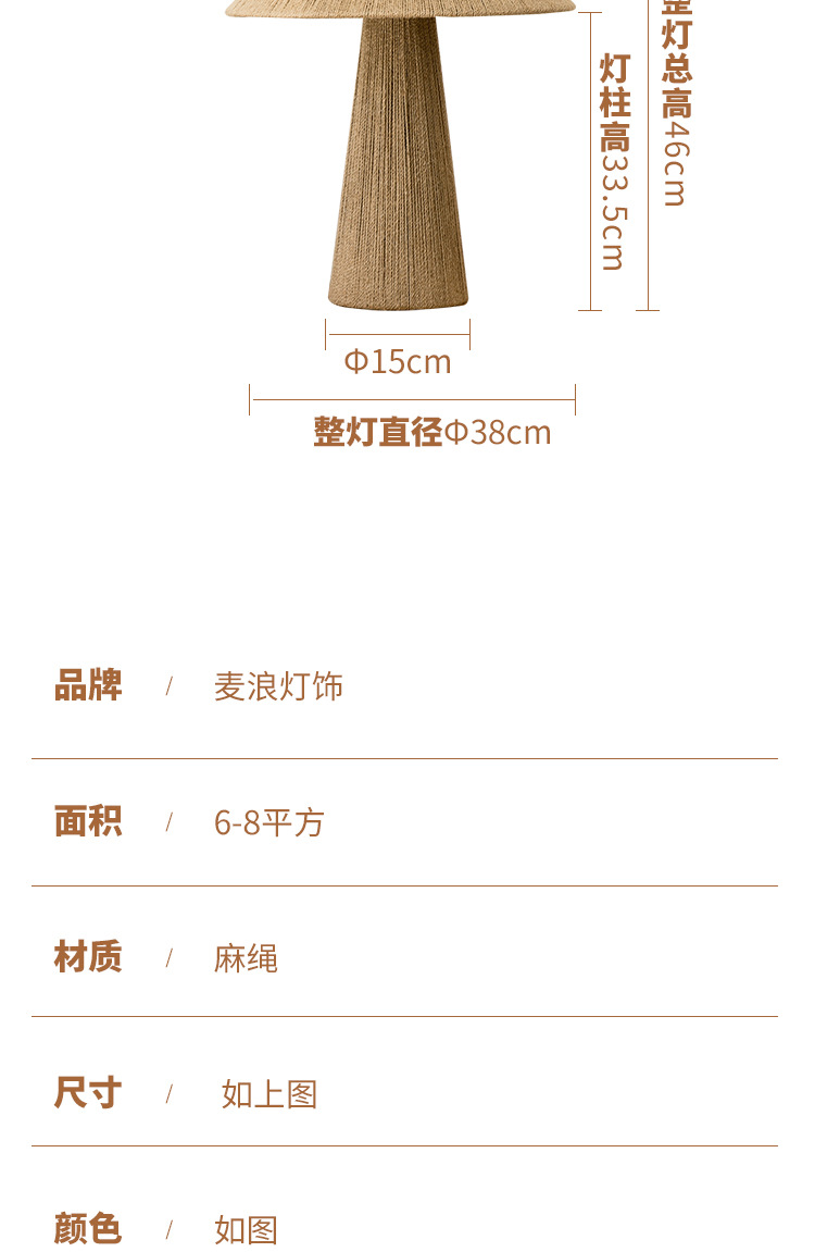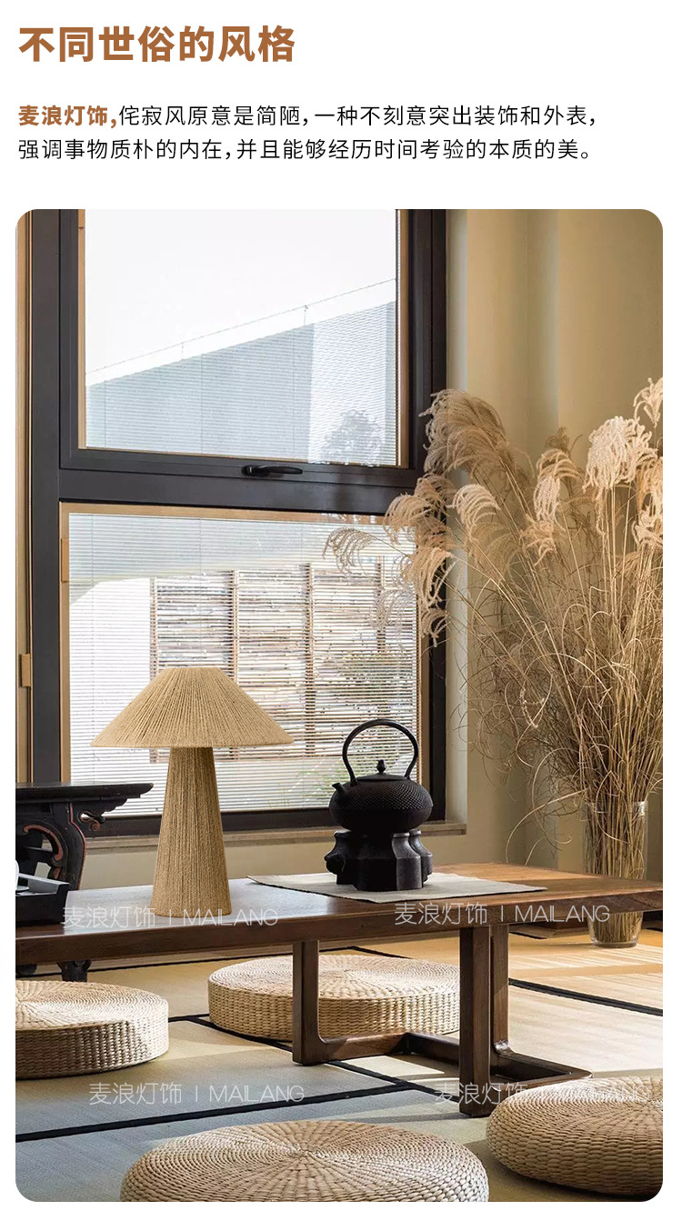 Qiji 스타일 테이블 램프 디자이너 스타일 빌라 거실 간단한 일본식 대마 로프 침실 빈티지 로프 짠 중간 고대 침대 옆 램프스토어 가기