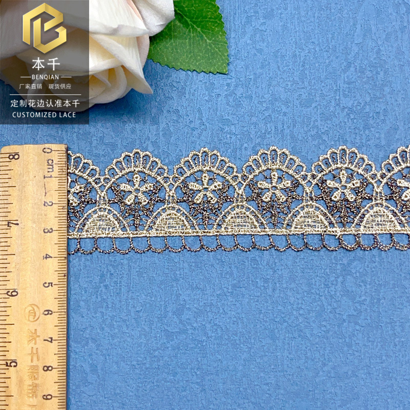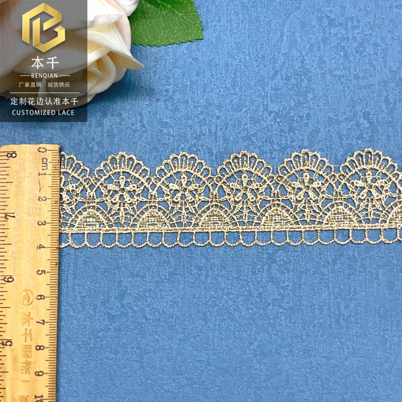 다채로운 레이스 자수 수용성 레이스 골드 실 2 색 아동복 보석 DIY 로리타 액세서리 4cm 일방적 바코드
