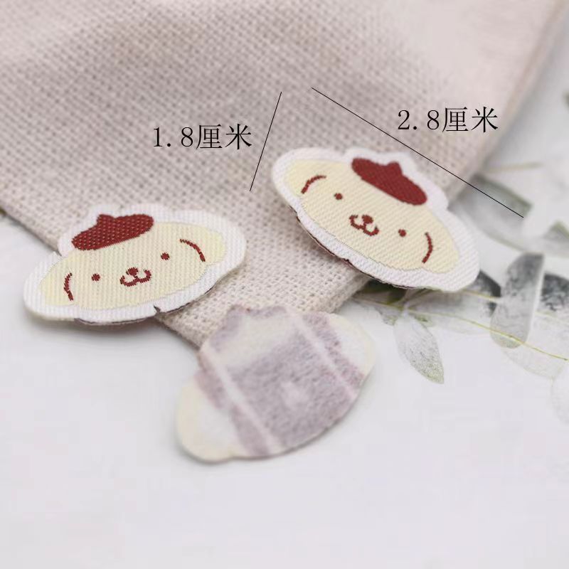 만화 Culomi 푸딩 개 패턴 천 라벨 장식 헤어핀 헤어 밴드 의류 신발 및 양말 소재 액세서리