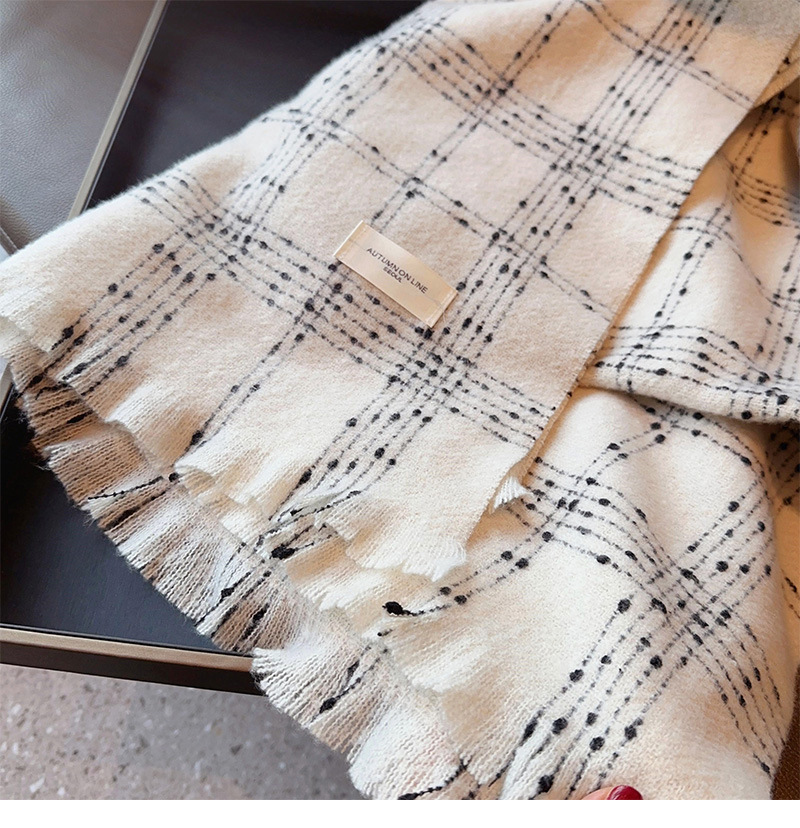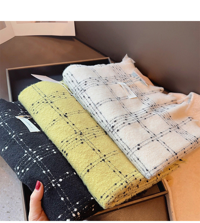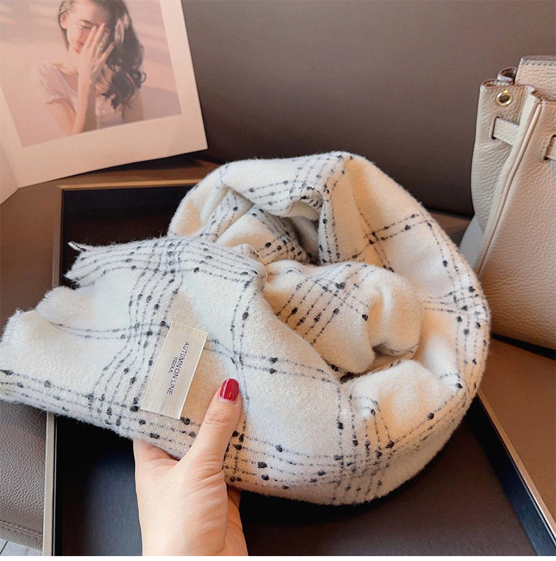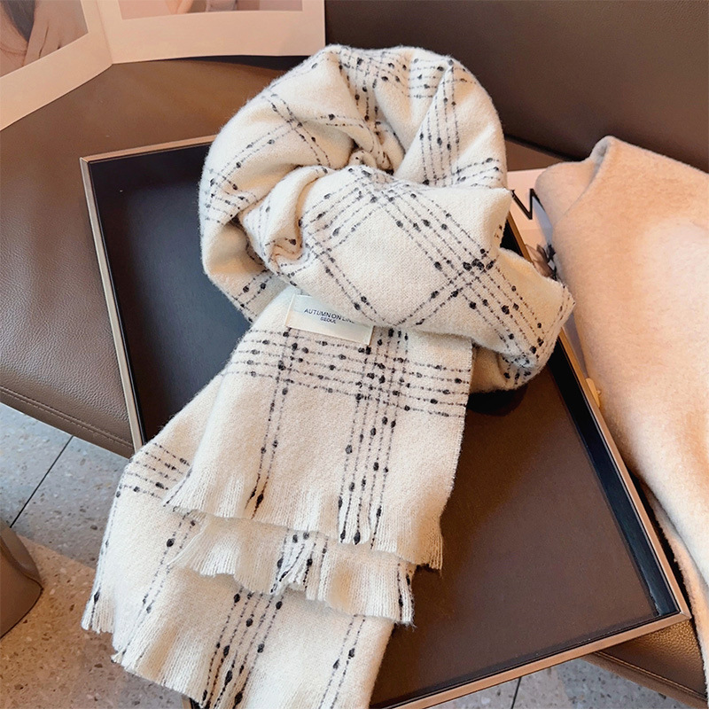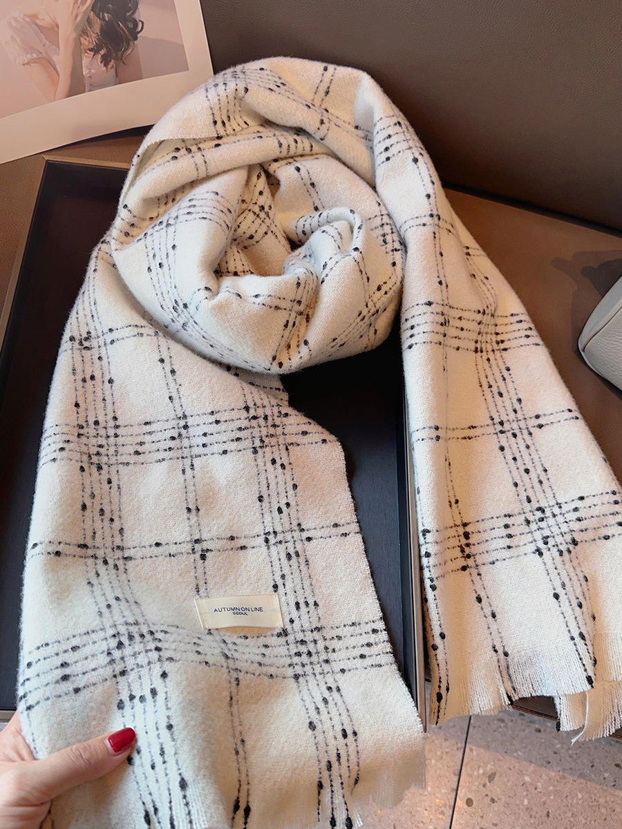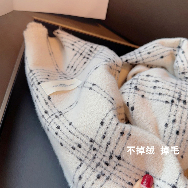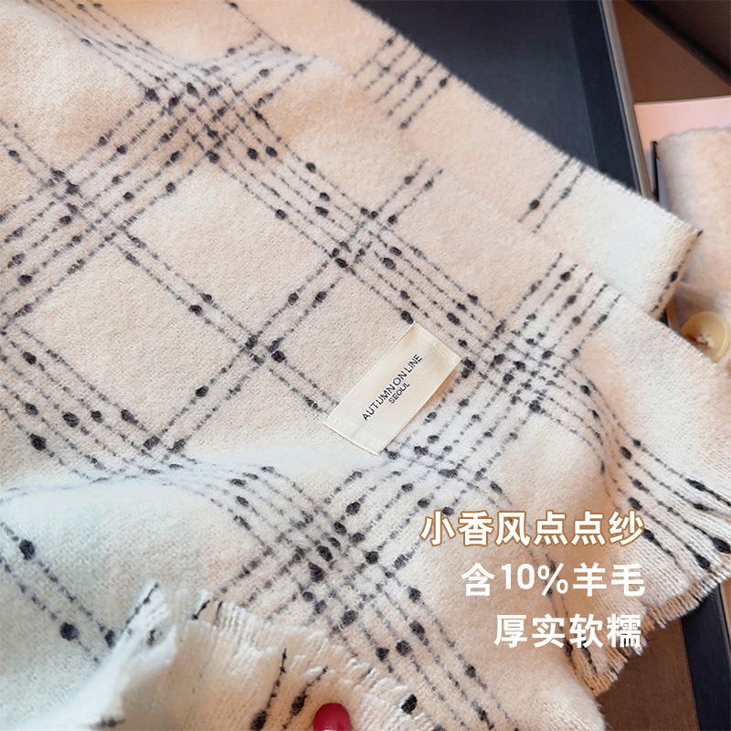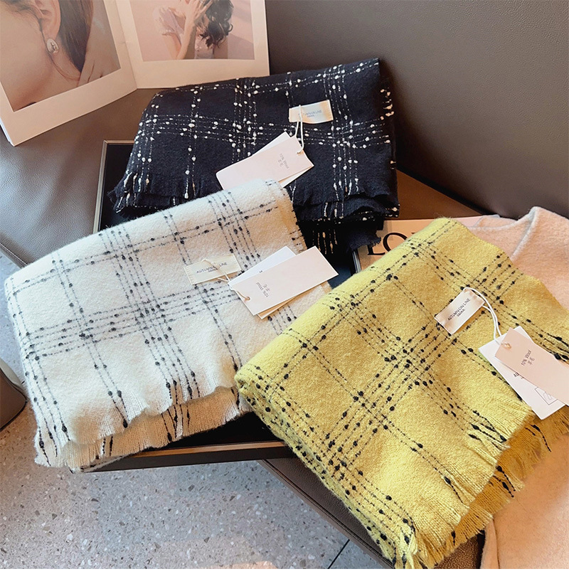 우아한 샤넬 스타일 클래식 격자 무늬 캐시미어 술 스카프 여성 겨울 2023 새로운 이중 사용 스카프 목도리 두꺼운스토어 가기