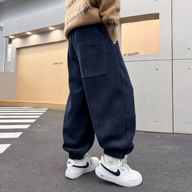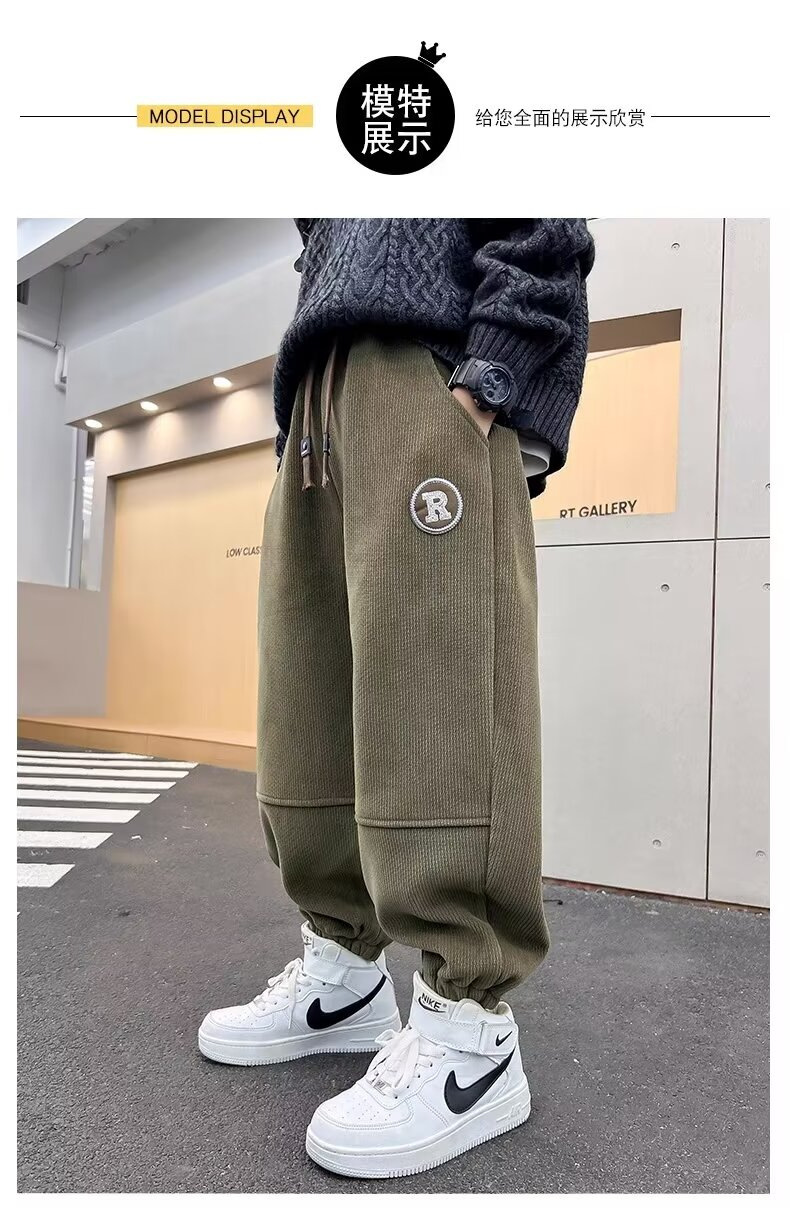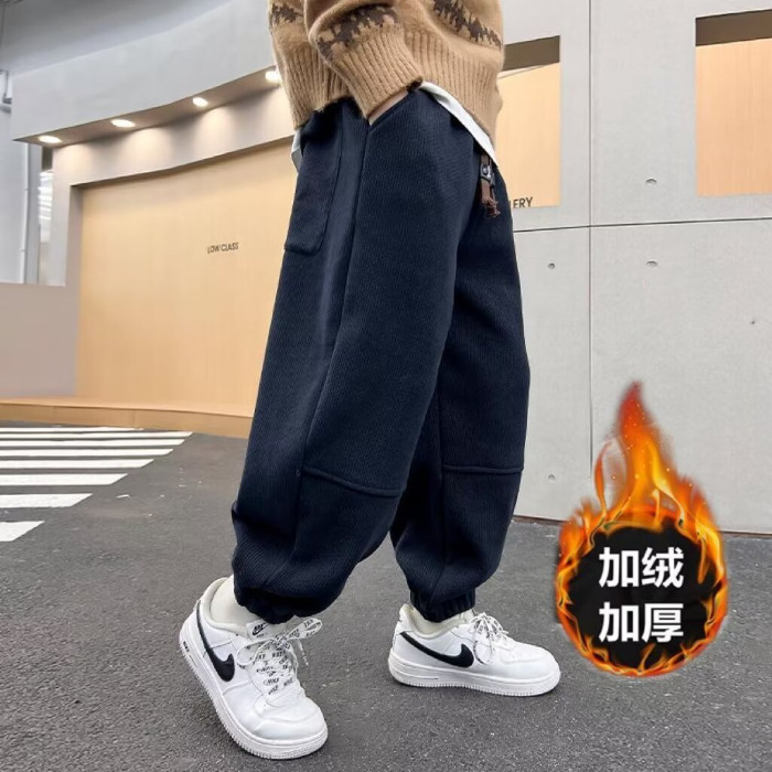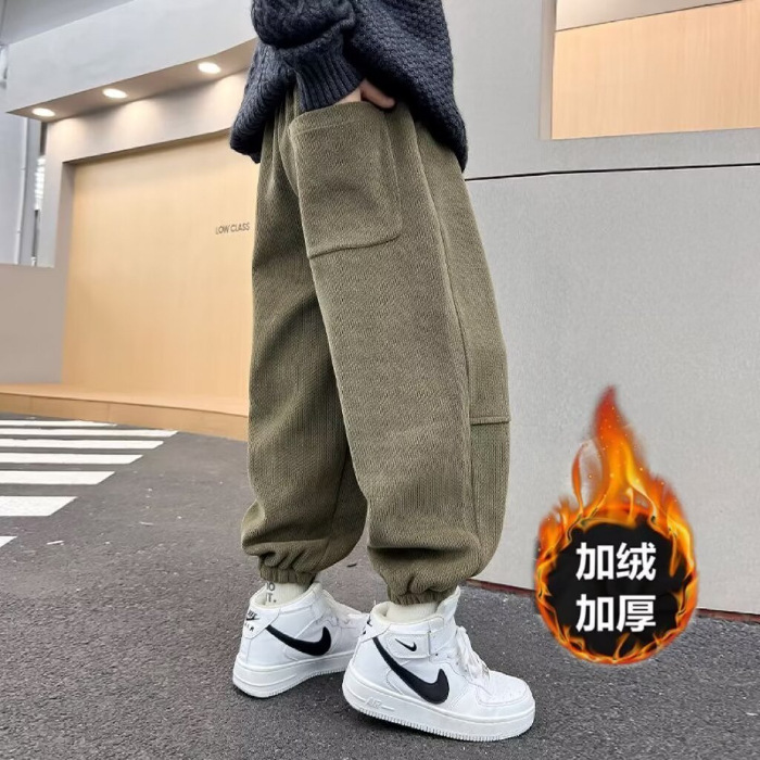 소년 바지 기모 겨울 2023 새로운 중형 및 대형 어린이 소년 겨울 두꺼운 바지 캐주얼 바지 유행