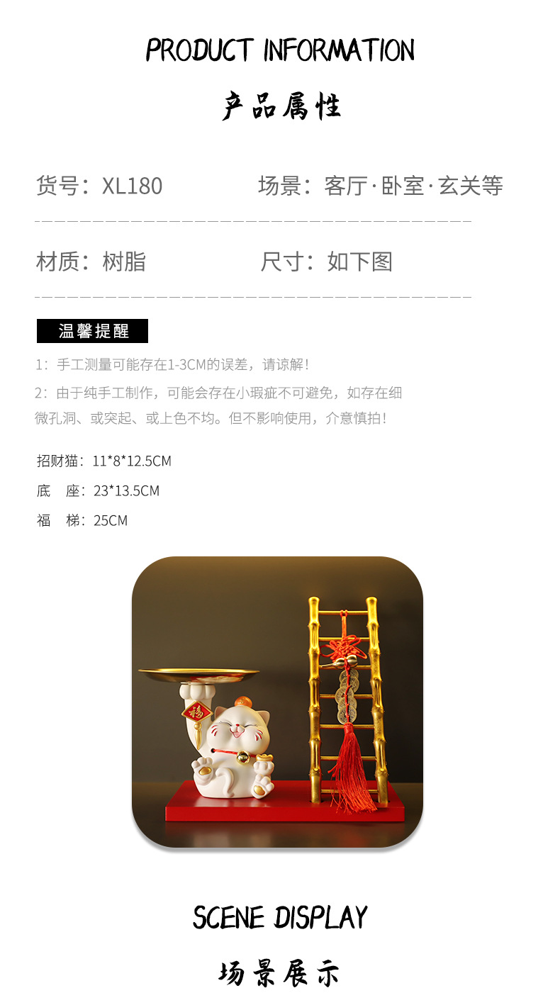 • 행운의 고양이 베이지-빨간색 하단 축복 사다리