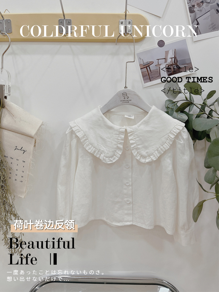 [특별 제공] 아동복 여아 흰색 셔츠 프렌치 리버스 칼라 패셔너블 탑 가을 신작 아동 긴팔 셔츠 트렌드스토어 가기