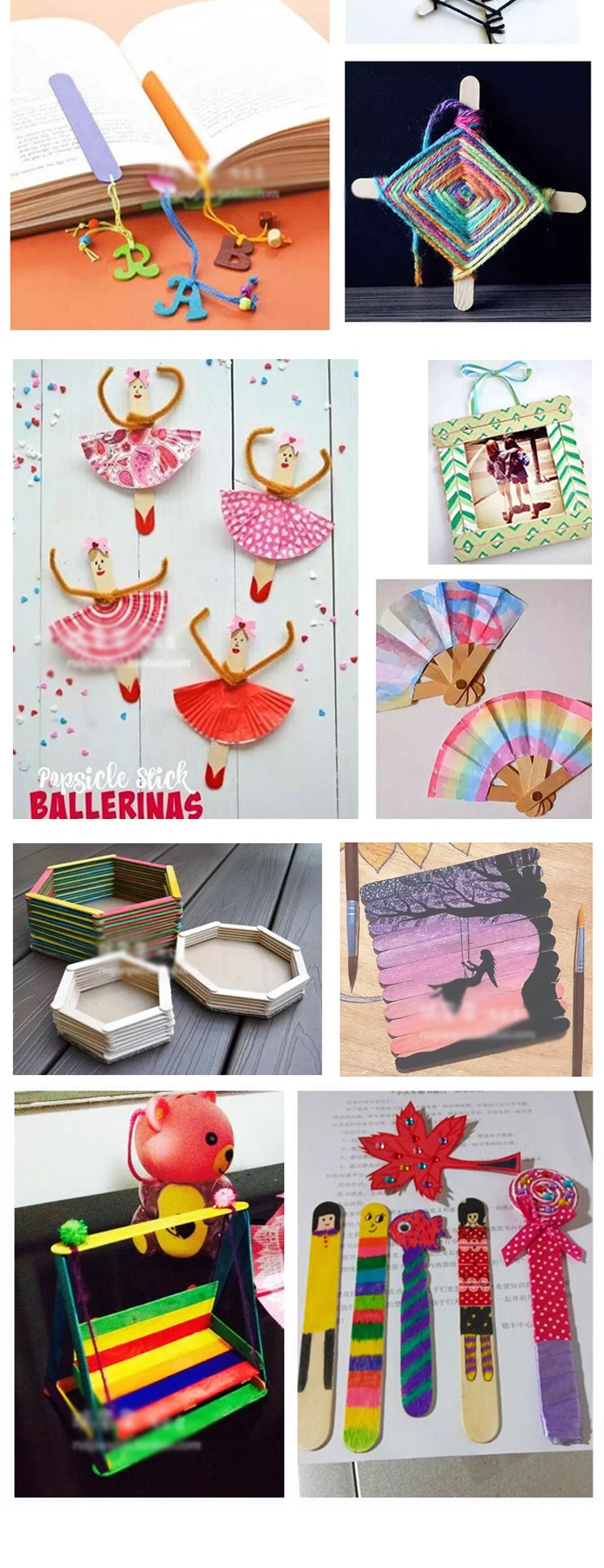 어린이 손으로 만든 아이스크림 스틱 나무 스트립 유치원 DIY 손으로 붙여 넣은 창조적 인 예술 장난감 모델 소재스토어 가기