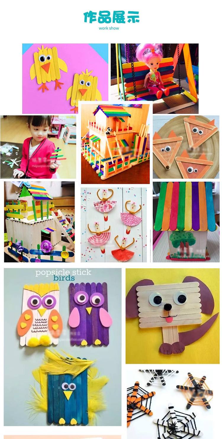어린이 손으로 만든 아이스크림 스틱 나무 스트립 유치원 DIY 손으로 붙여 넣은 창조적 인 예술 장난감 모델 소재