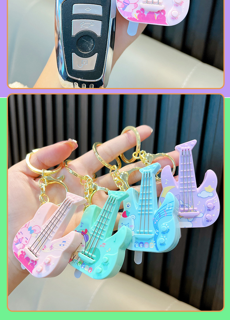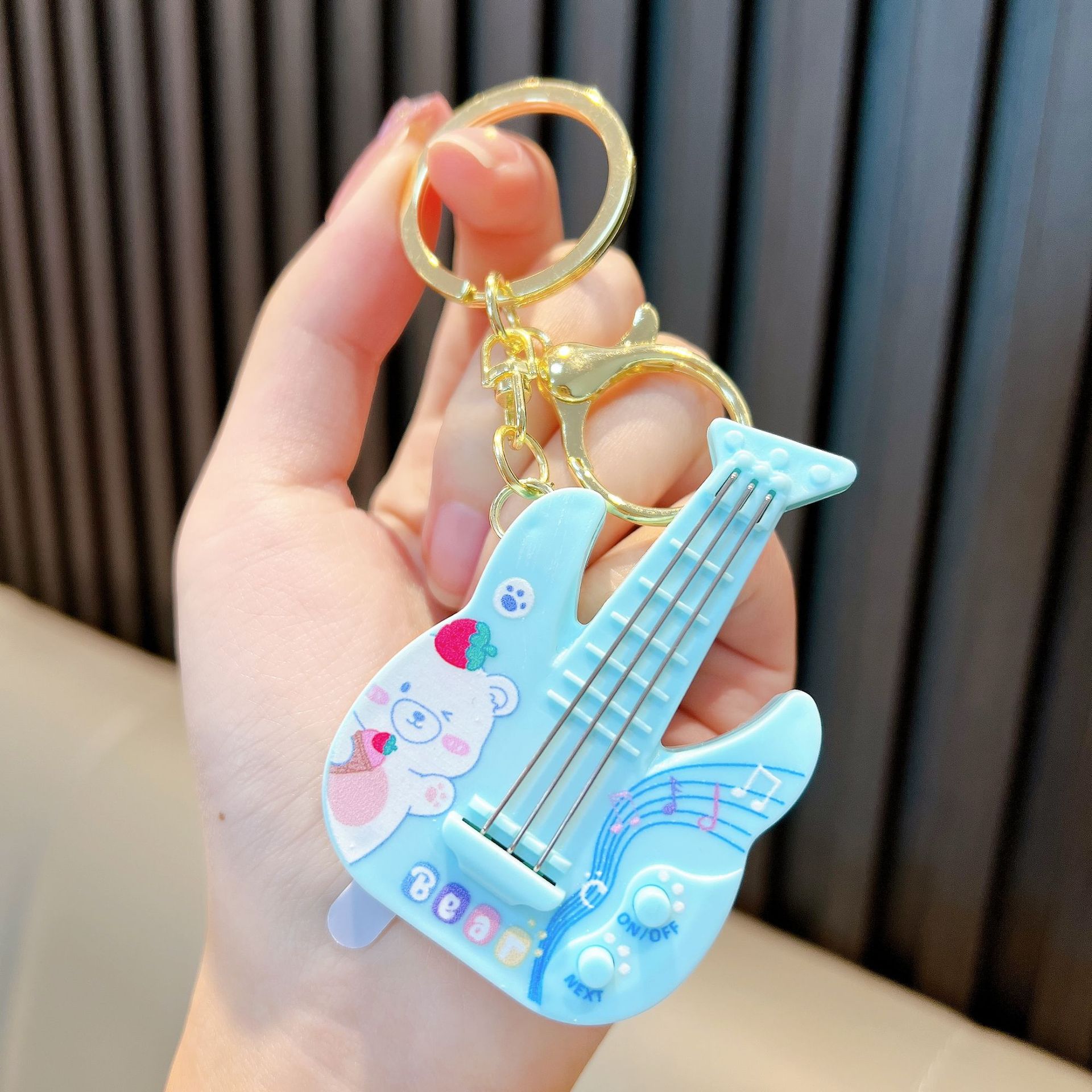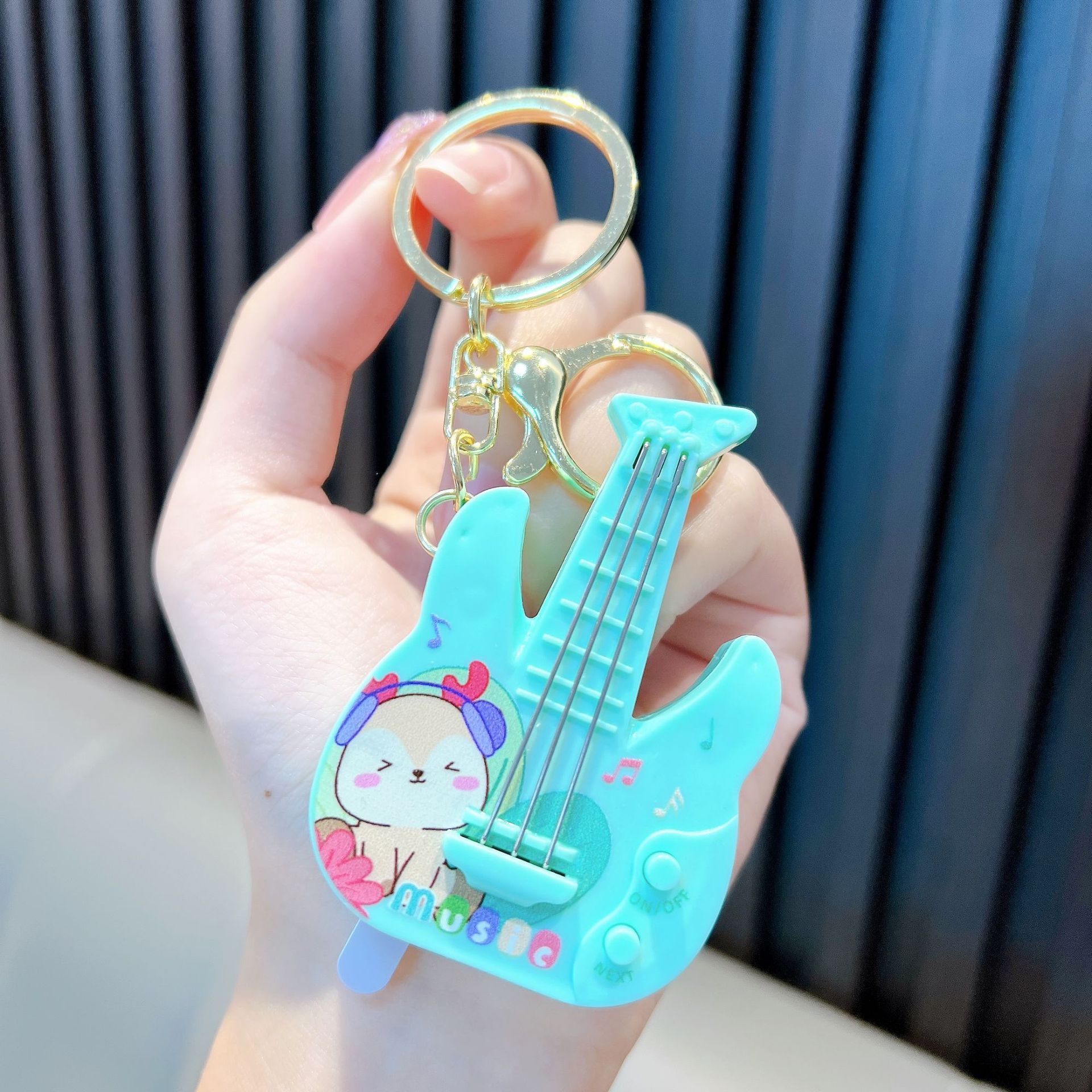 만화 동물 기타 키 체인 미니 음악 장난감 자동차 키 체인 가방 펜던트 클로 기계 선물 공급스토어 가기
