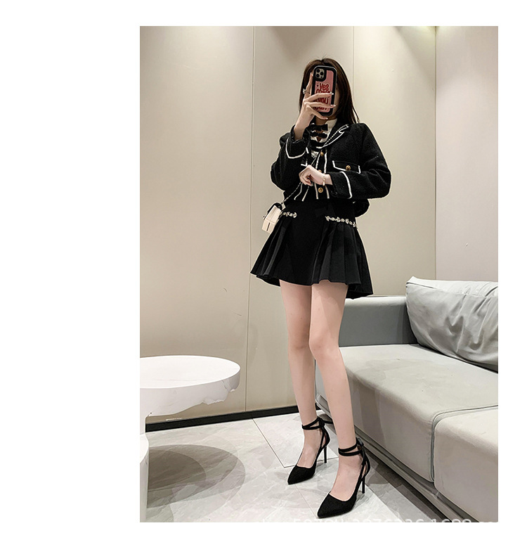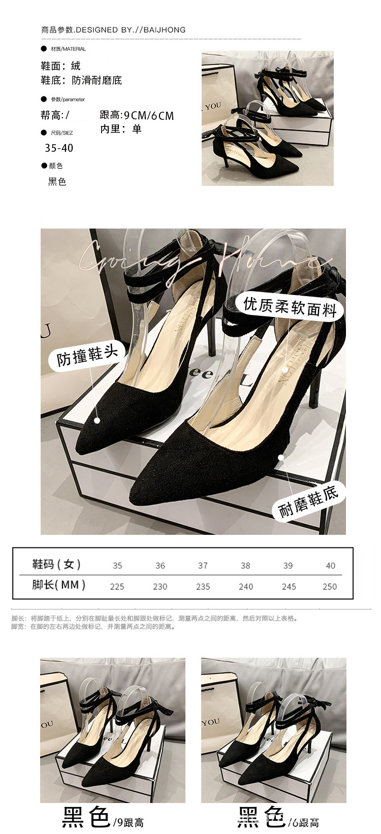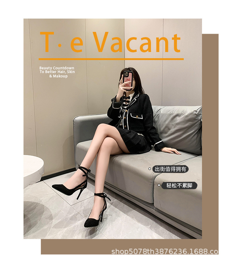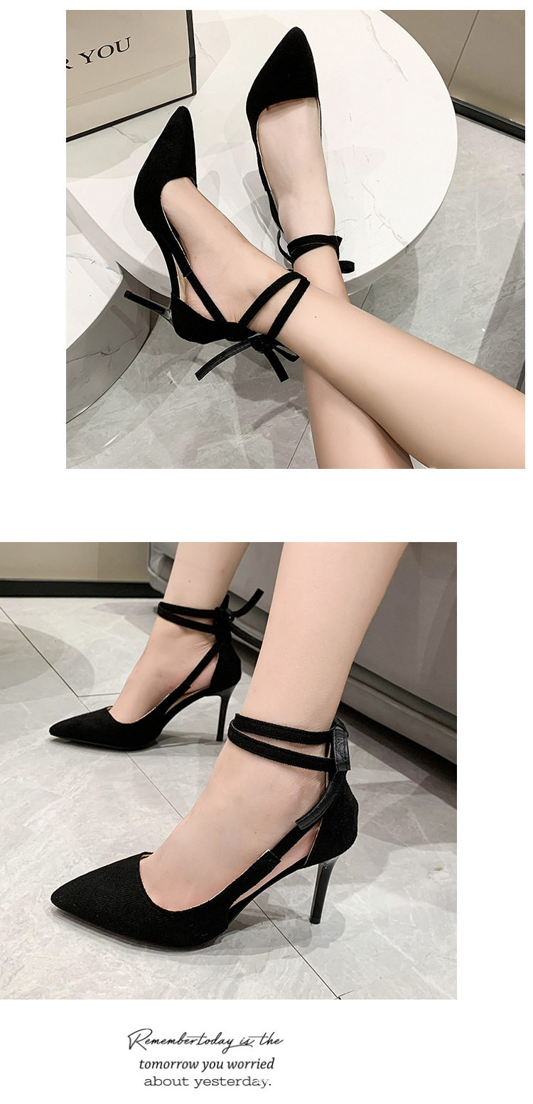 얇은 굽 하이힐 여성스러운 스타일 끈 장식 프렌치 스타일 순수한 매력 블랙 뾰족코 다용도 코스프레 패션 만능 스타일스토어 가기