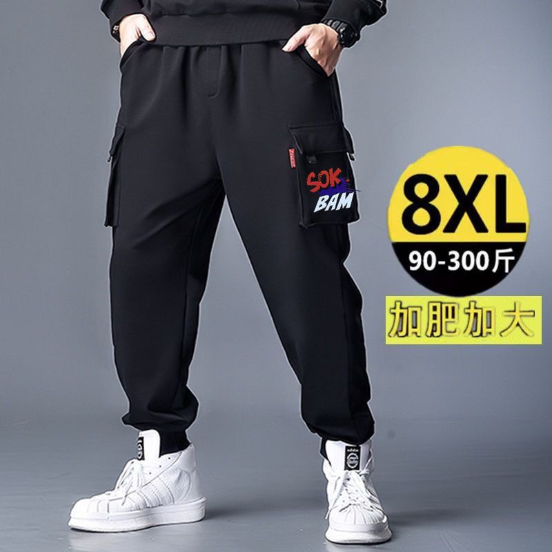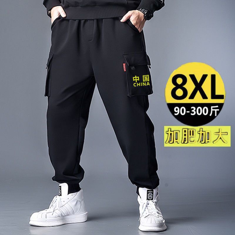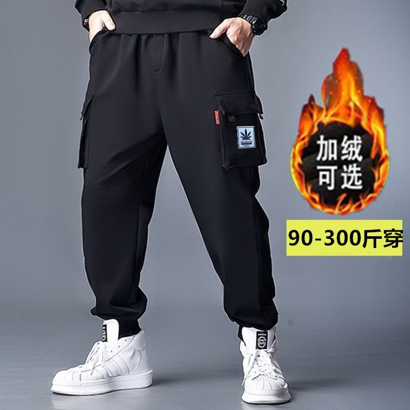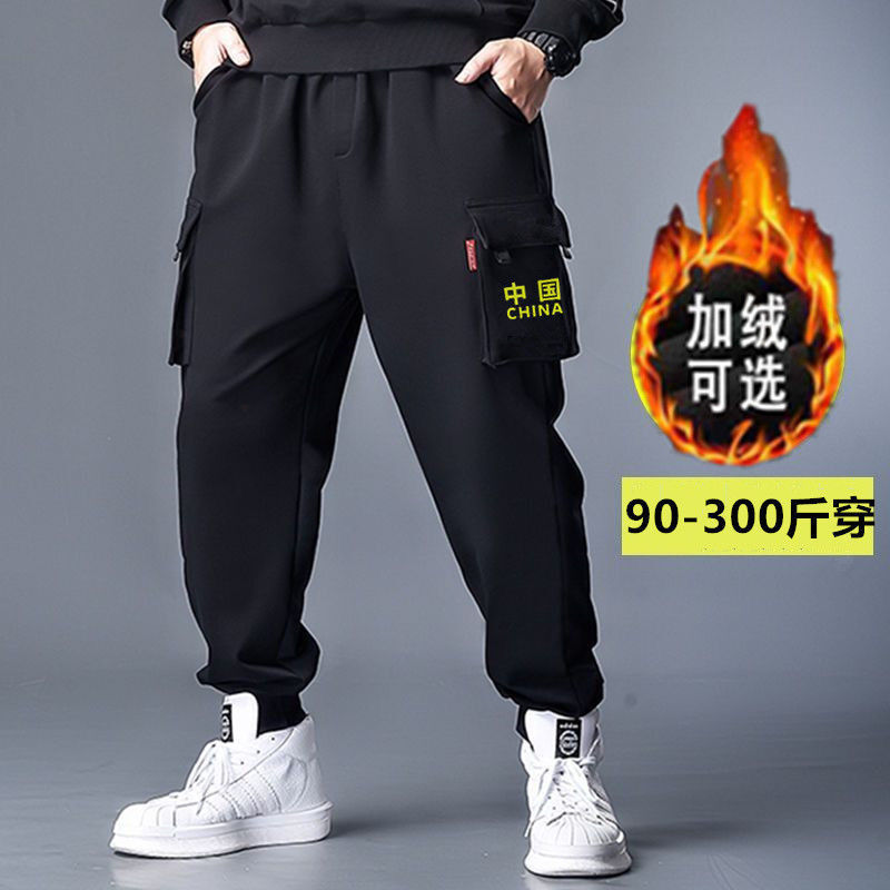 바지 남자 가을과 겨울 기모 두꺼운 캐주얼 바지 느슨한 발목 묶인 바지 남자 플러스 사이즈 스포츠 바지스토어 가기
