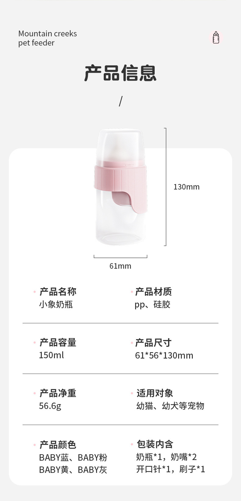 애완 동물 유니버설 아기 병 강아지 고양이 먹이 및 수유 인형 아기 고양이 신생아 특별한 물병 고양이와 개 용품스토어 가기