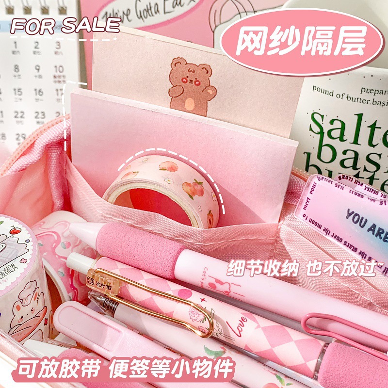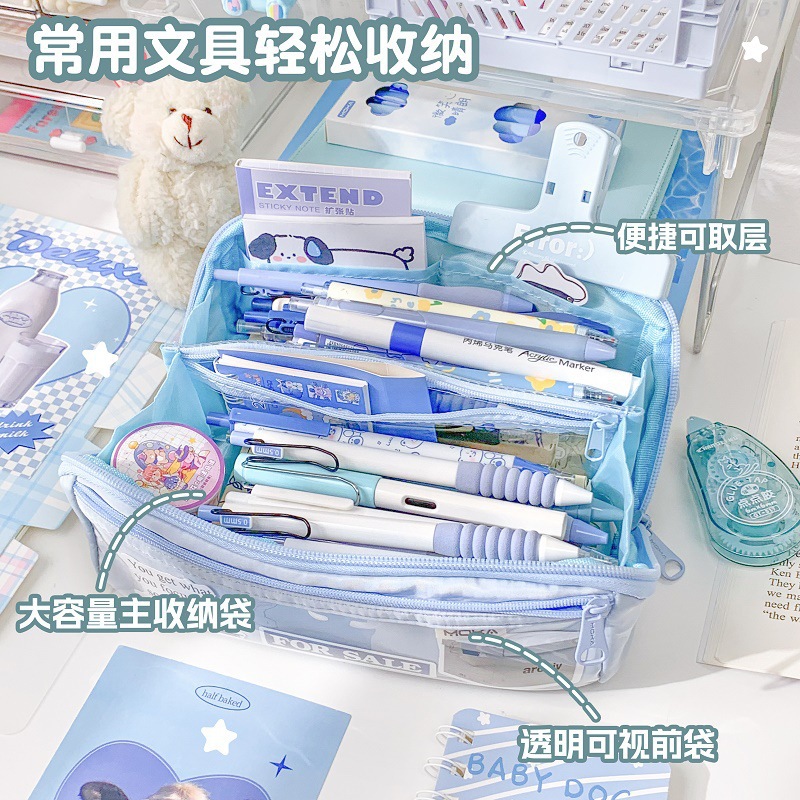 인터넷 유명 인사 다층 연필 케이스 학생 간단한 대용량 다기능 문구 상자 귀여운 소녀 심장 문구 가방스토어 가기
