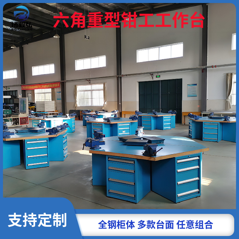솔리드 우드 데스크탑 6 면 콘솔 6 스테이션 벤치 벤치 벤치 바이스 육각형 워크 벤치 파워 아일랜드 훈련 테이블
