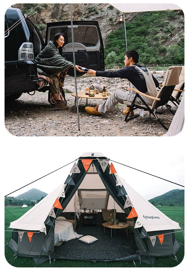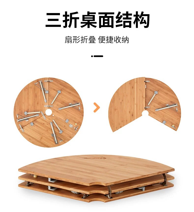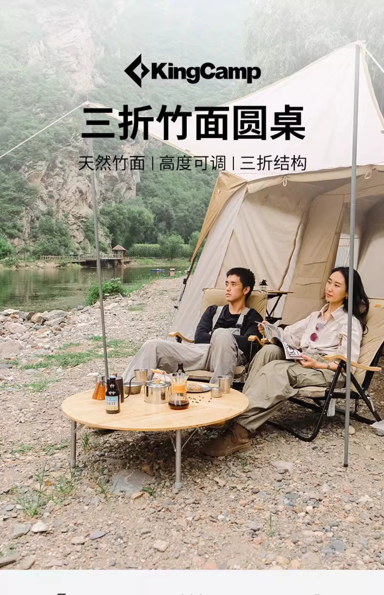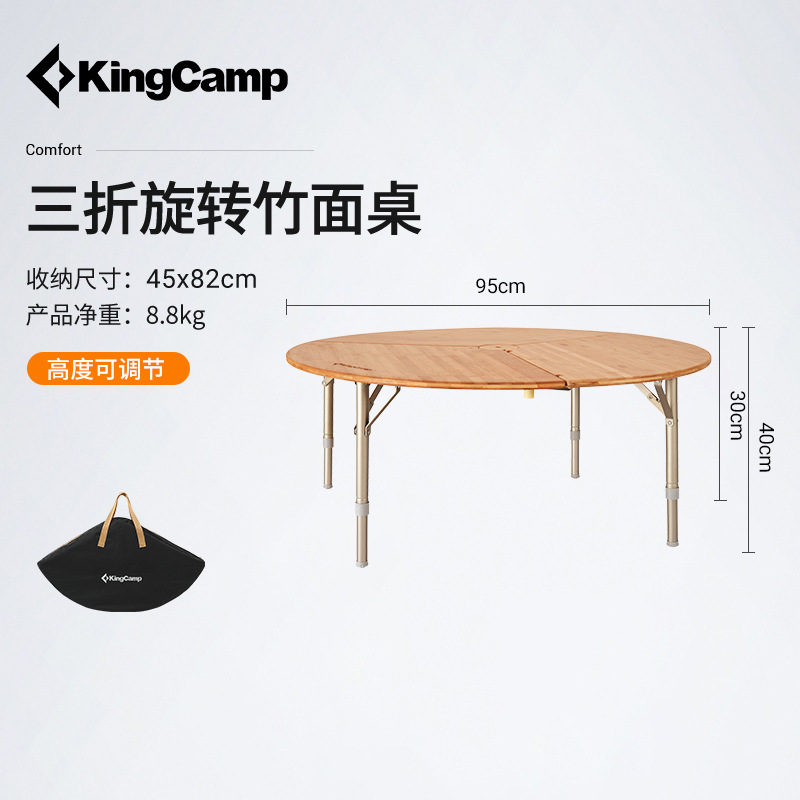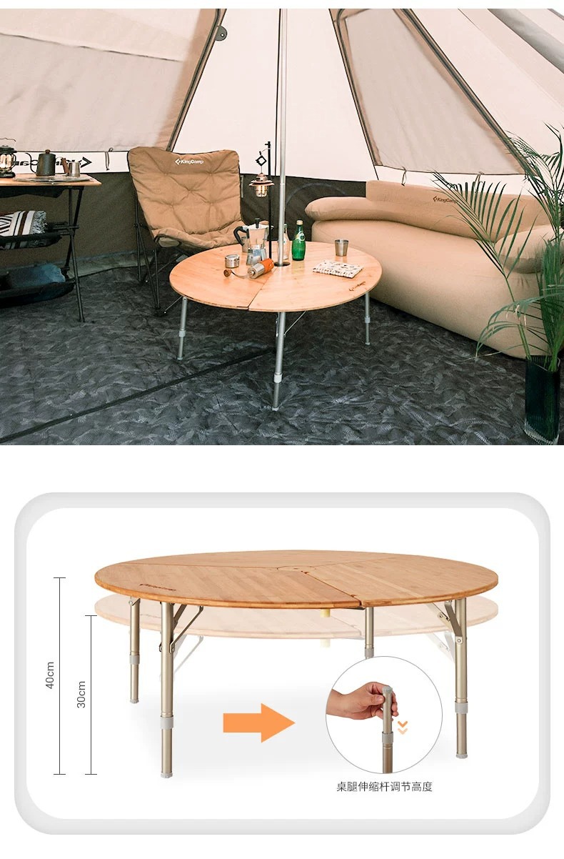 킹캠프 야외 접이식 테이블 대나무 표면 캠핑 라운드 테이블 휴대용 텐트 테이블 알루미늄 합금 피크닉 테이블 높이 조절 가능
