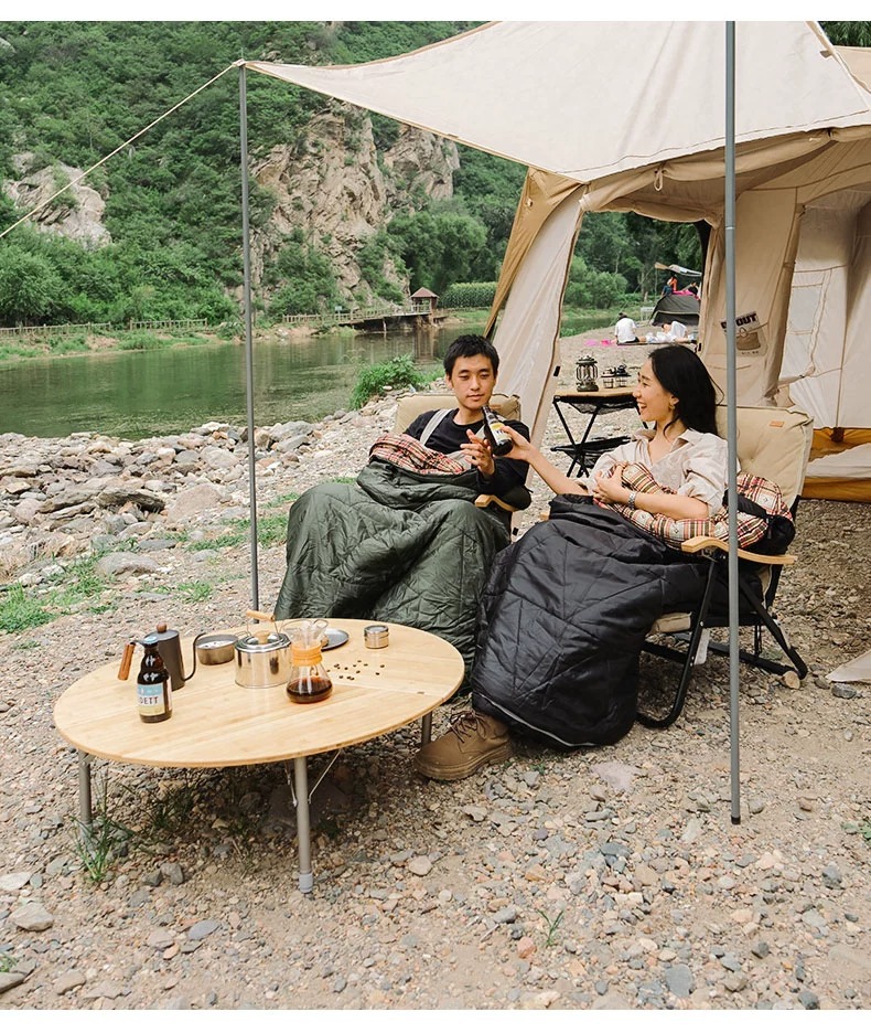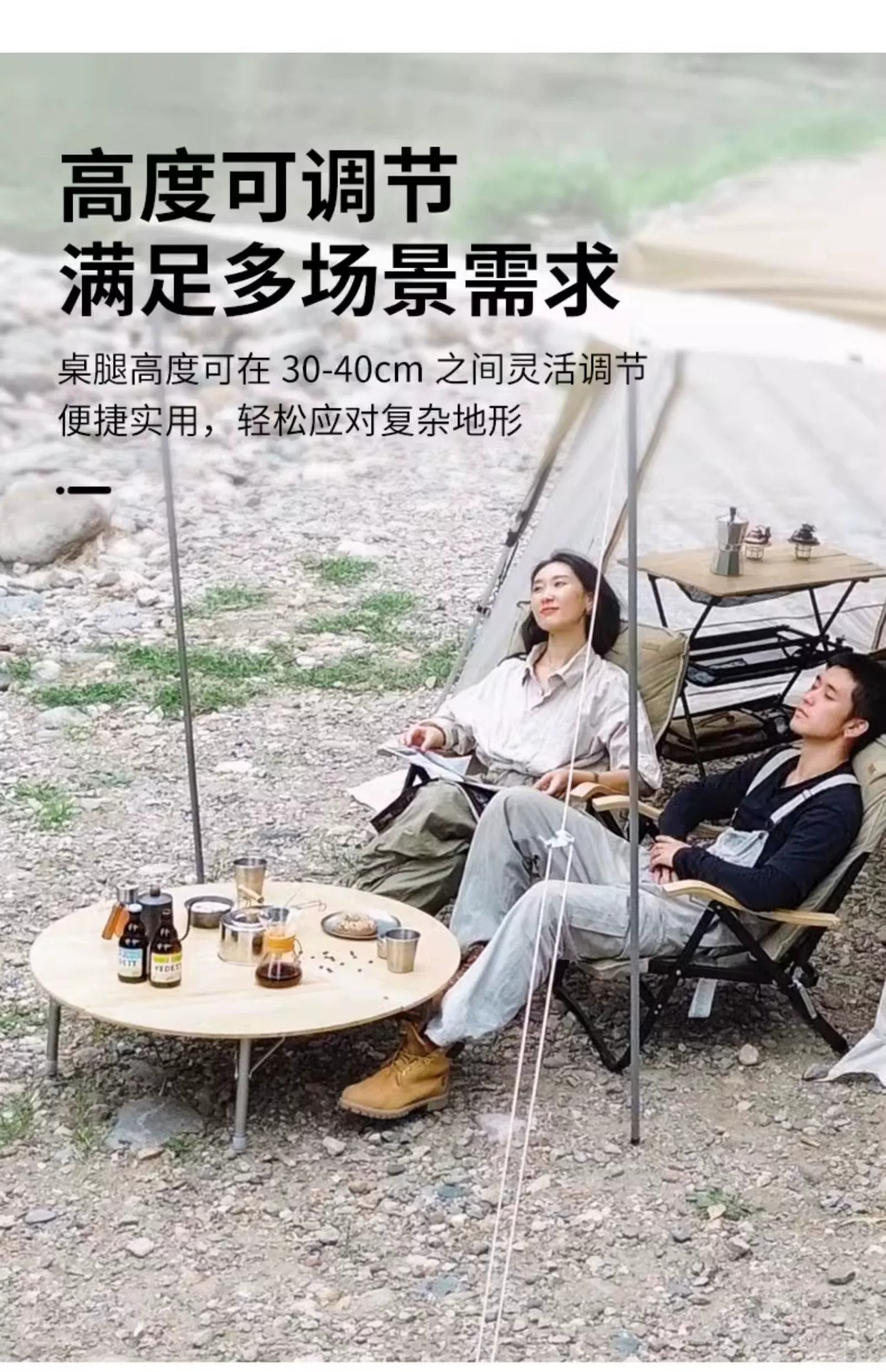 킹캠프 야외 접이식 테이블 대나무 표면 캠핑 라운드 테이블 휴대용 텐트 테이블 알루미늄 합금 피크닉 테이블 높이 조절 가능스토어 가기
