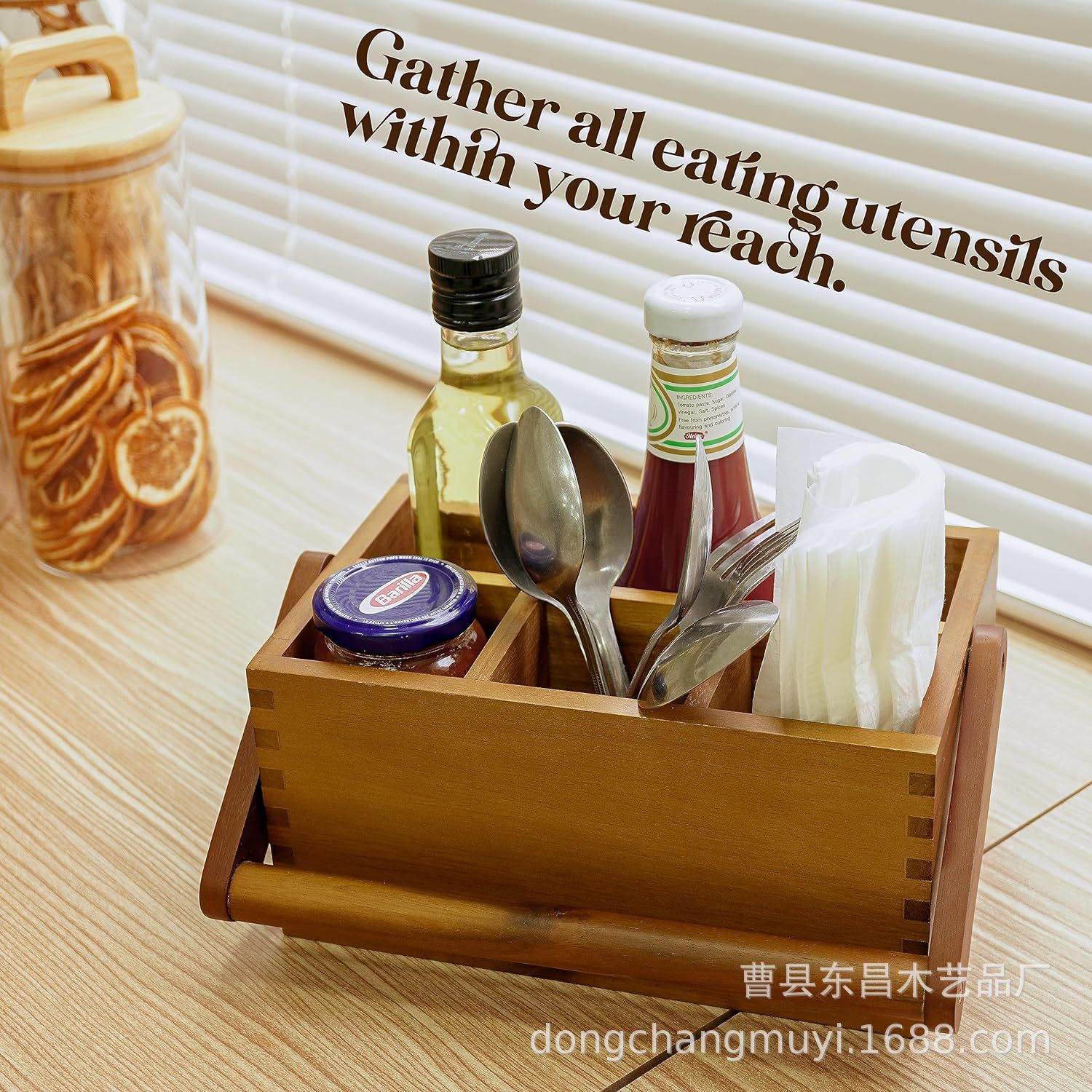 휴대용 나무 식기 보관 상자 간단한 주방 데스크탑 나이프와 포크 분류 조직 상자 단단한 나무 조미료 상자스토어 가기