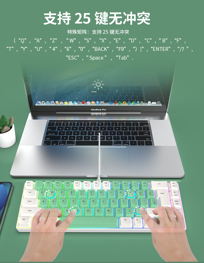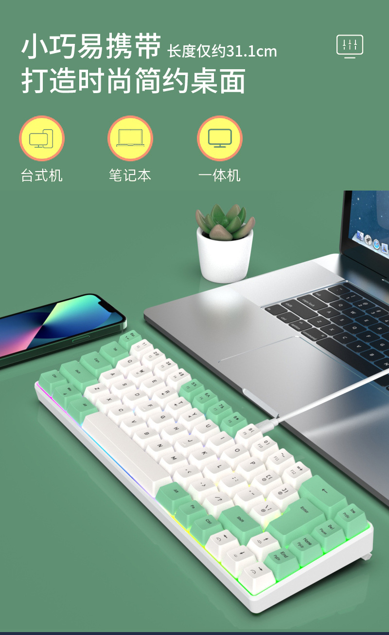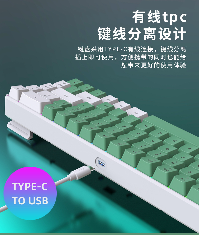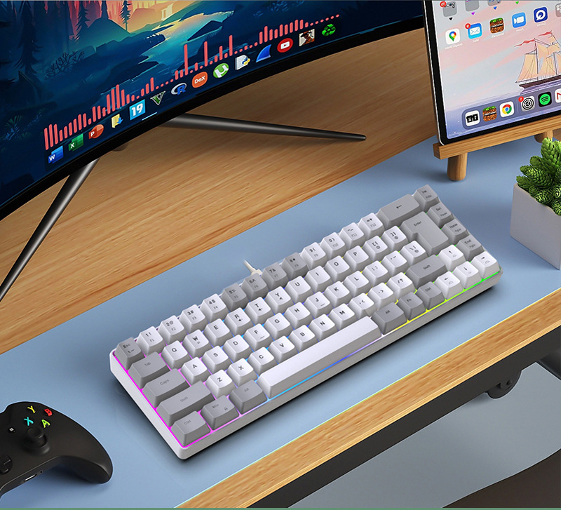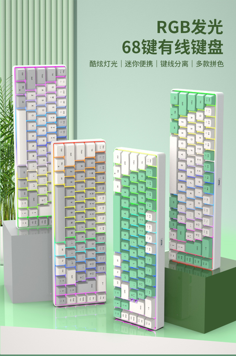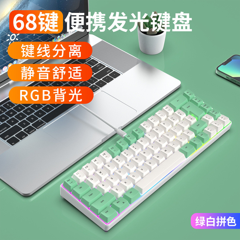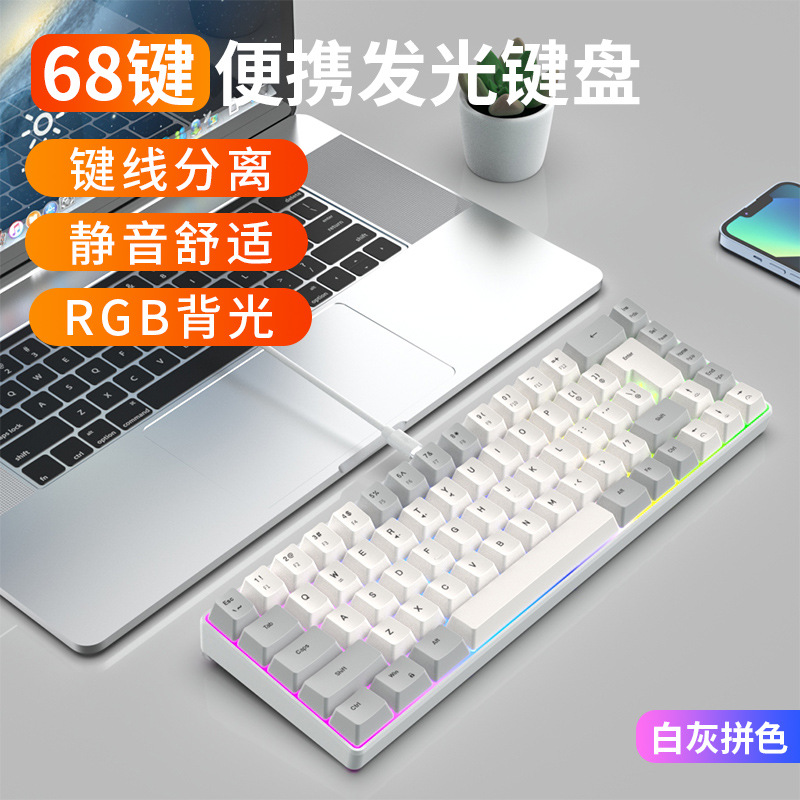 크로스보더 스팟 K701 키케이블 분리형 68키 유선 키보드 기계식 느낌 듀얼 컬러 RGB 조명 게이밍 키보드