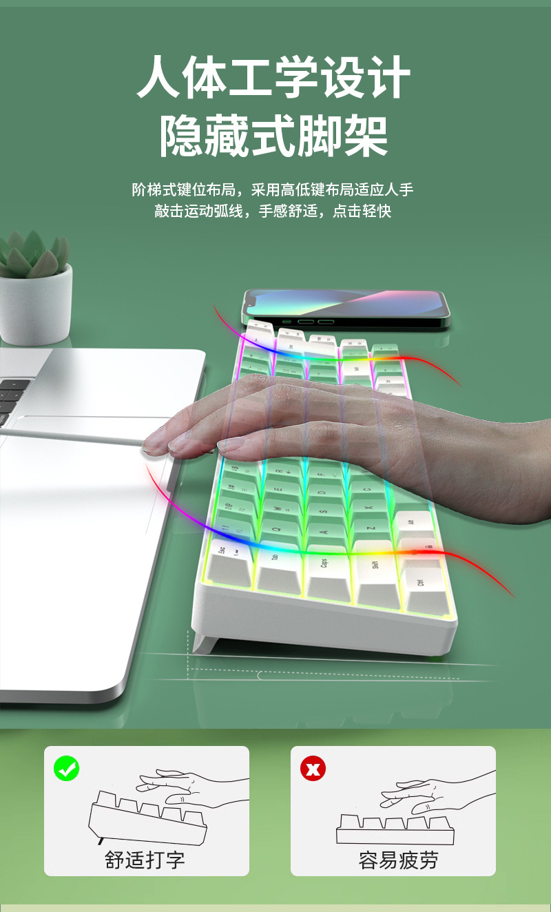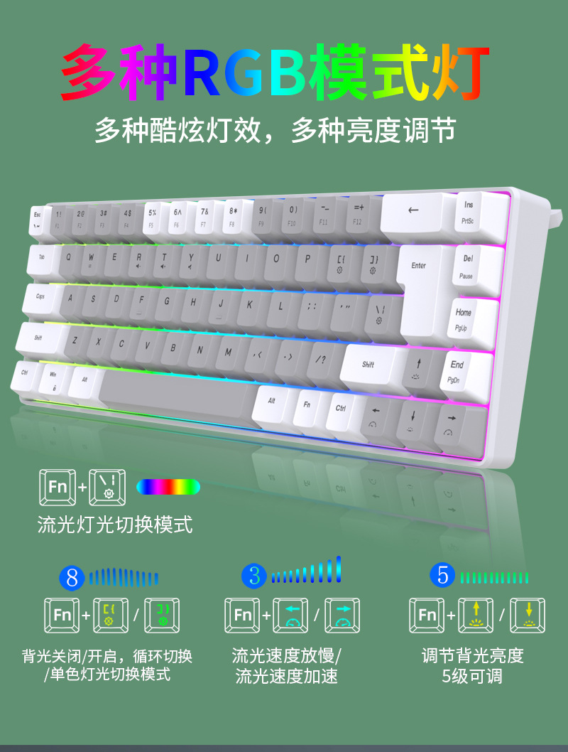 크로스보더 스팟 K701 키케이블 분리형 68키 유선 키보드 기계식 느낌 듀얼 컬러 RGB 조명 게이밍 키보드스토어 가기