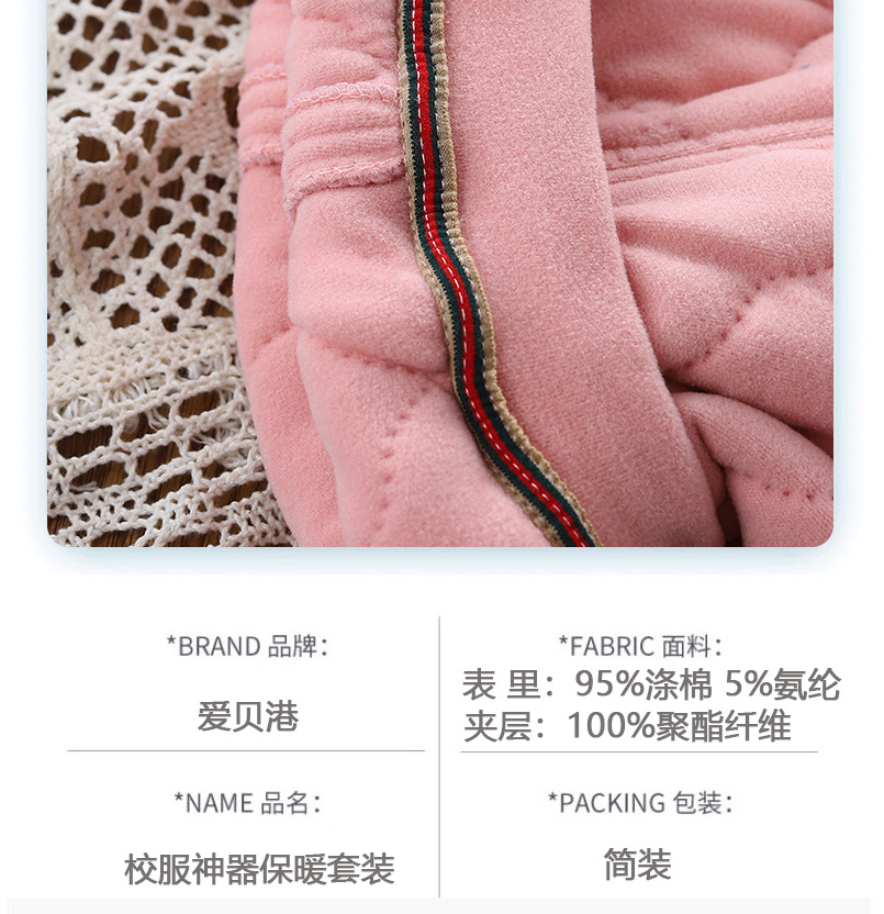 어린이 두꺼운 따뜻한 베이비 라이너 중형 및 대형 어린이 겨울 따뜻한 세트 학교 유니폼 유물 투피스 따뜻한 옷