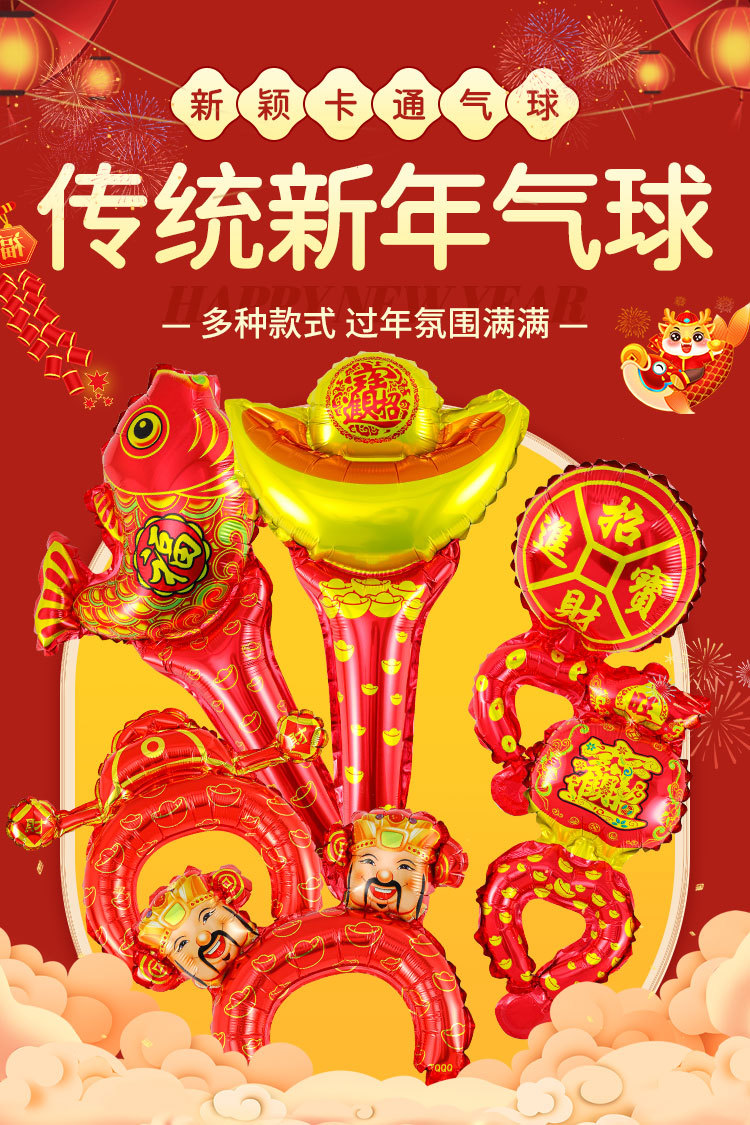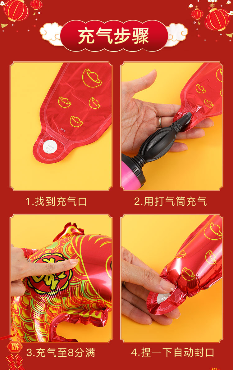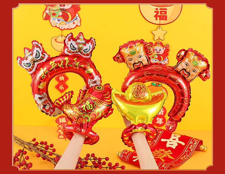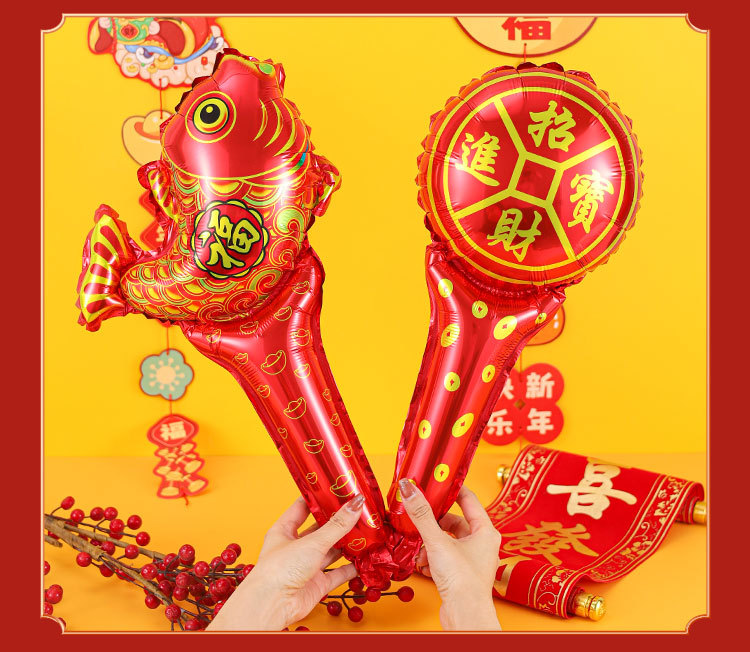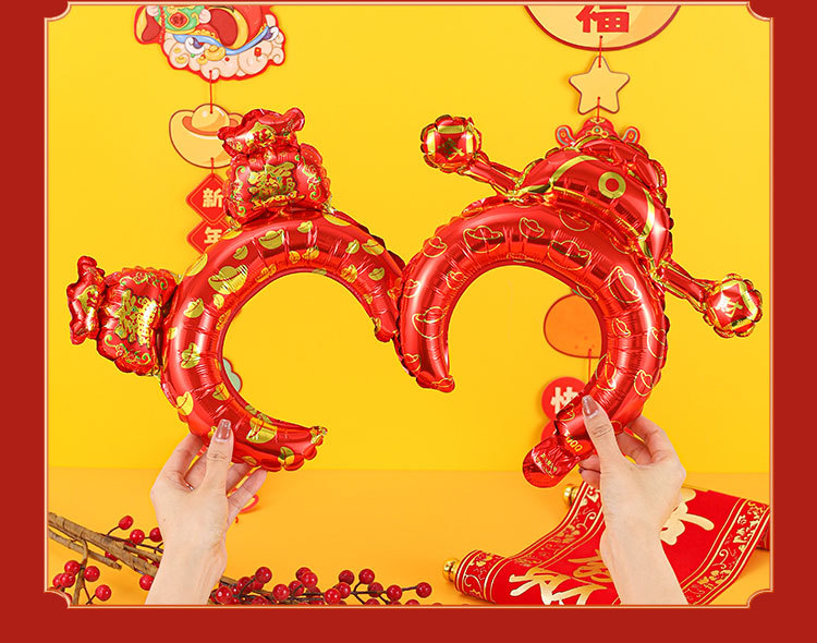 드래곤 새해 복 많이 받으세요 풍선 장식 봄 축제 알루미늄 필름 풍선 수제 스틱 풍선 어린이 스톨 선물스토어 가기