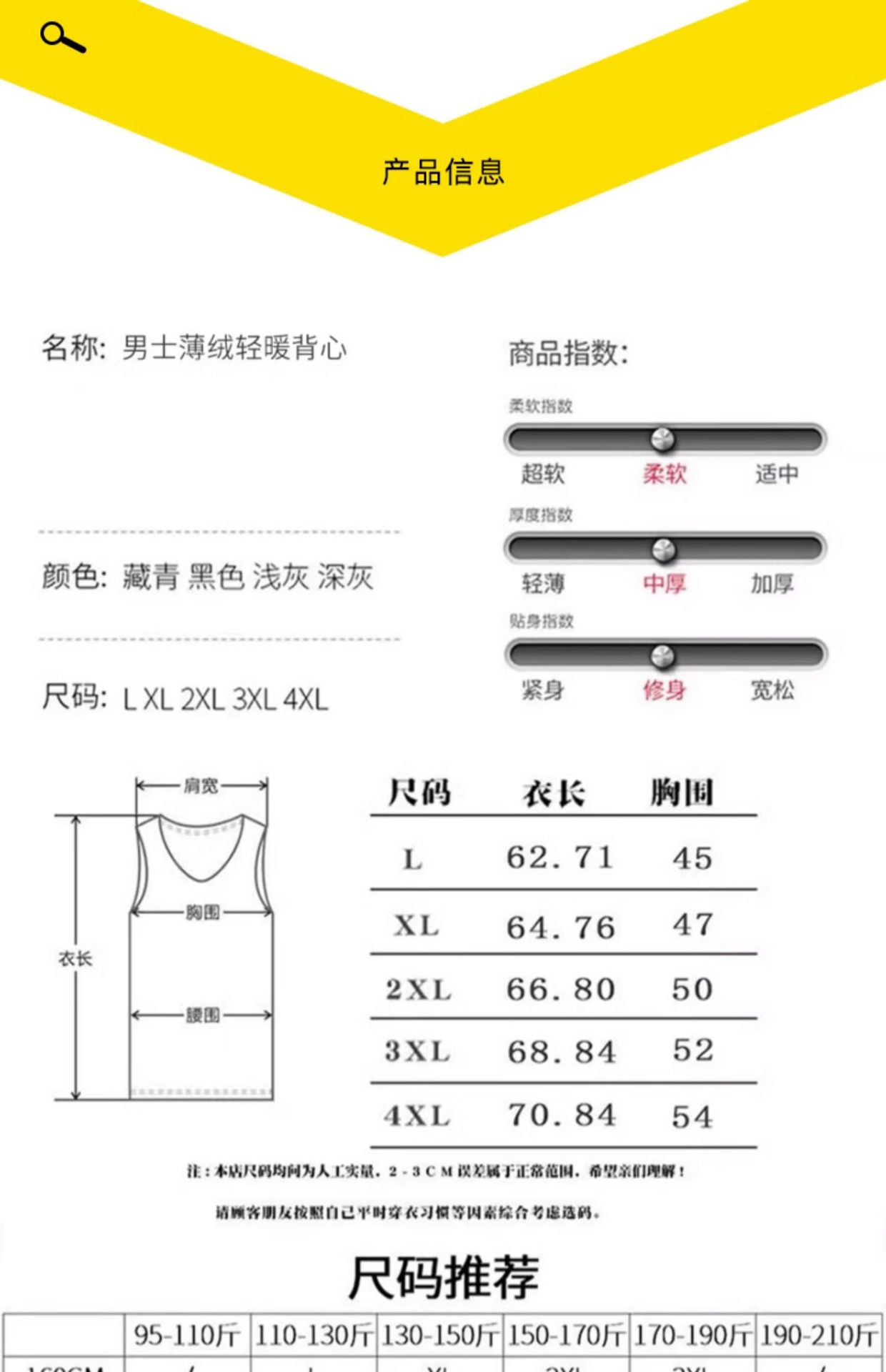 가을과 겨울 벨벳 패딩 열 조끼 남성용 양복 조끼 민소매 티셔츠 난방 조끼 바닥 셔츠 속옷 착용스토어 가기