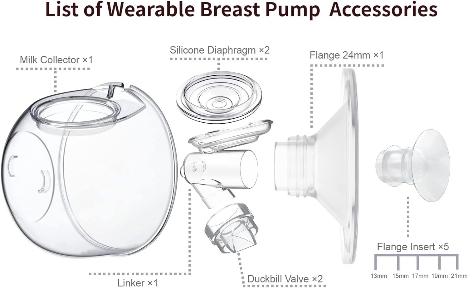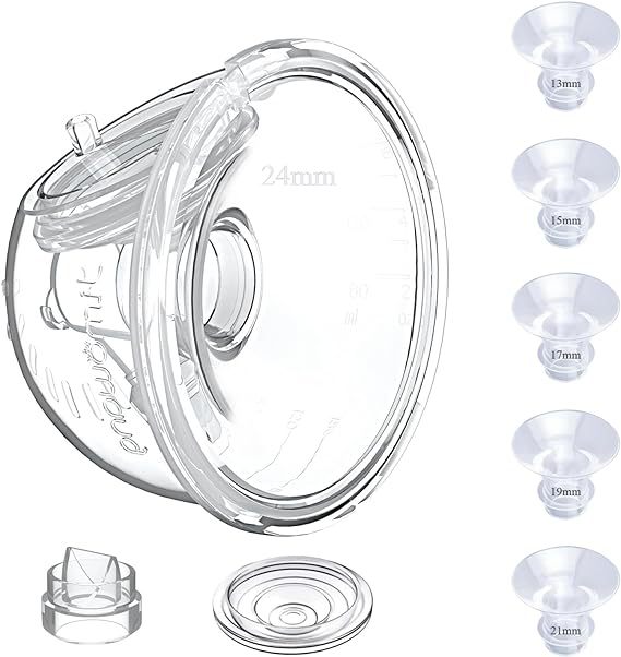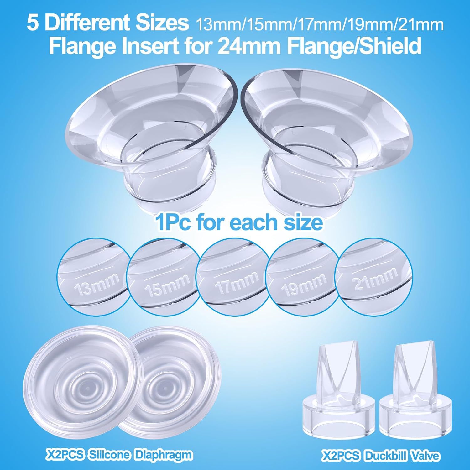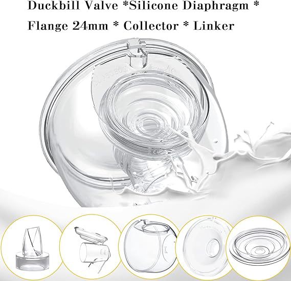 • 새로운 유방 펌프 세트 24mm(1 쉘 2 실리콘 다이어프램 1 3 웨이 2 덕빌 밸브 1 24mm 경적 커버 5 플랜지 1