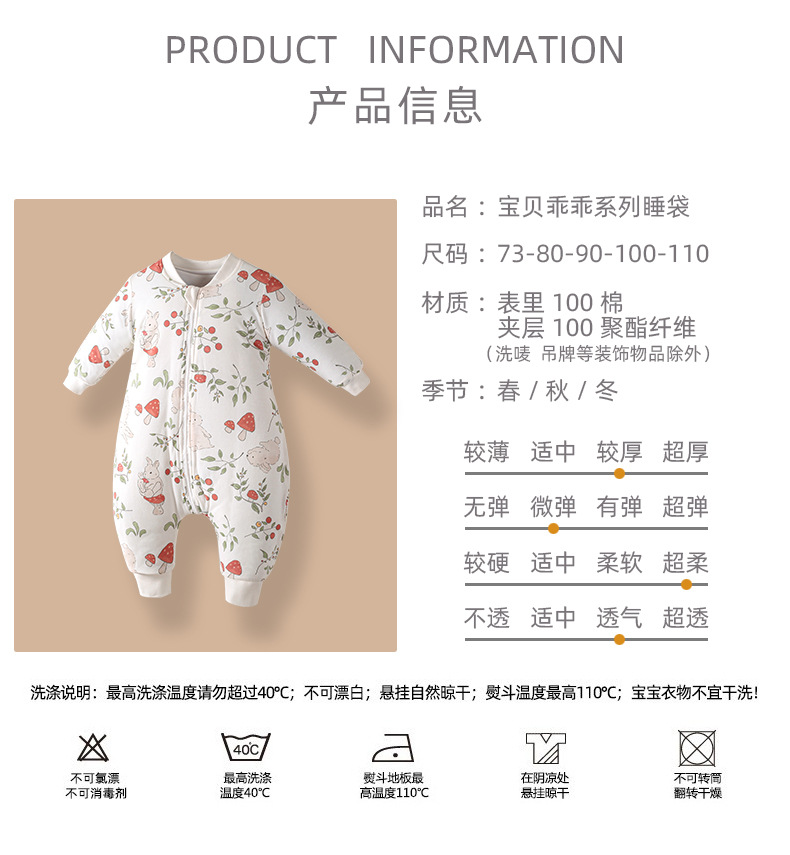 아기 침낭 가을과 겨울 120g 퀼트 신생아 면화 패딩 옷 3 헤드 지퍼 안티 킥 아기 스플릿 레그 침낭