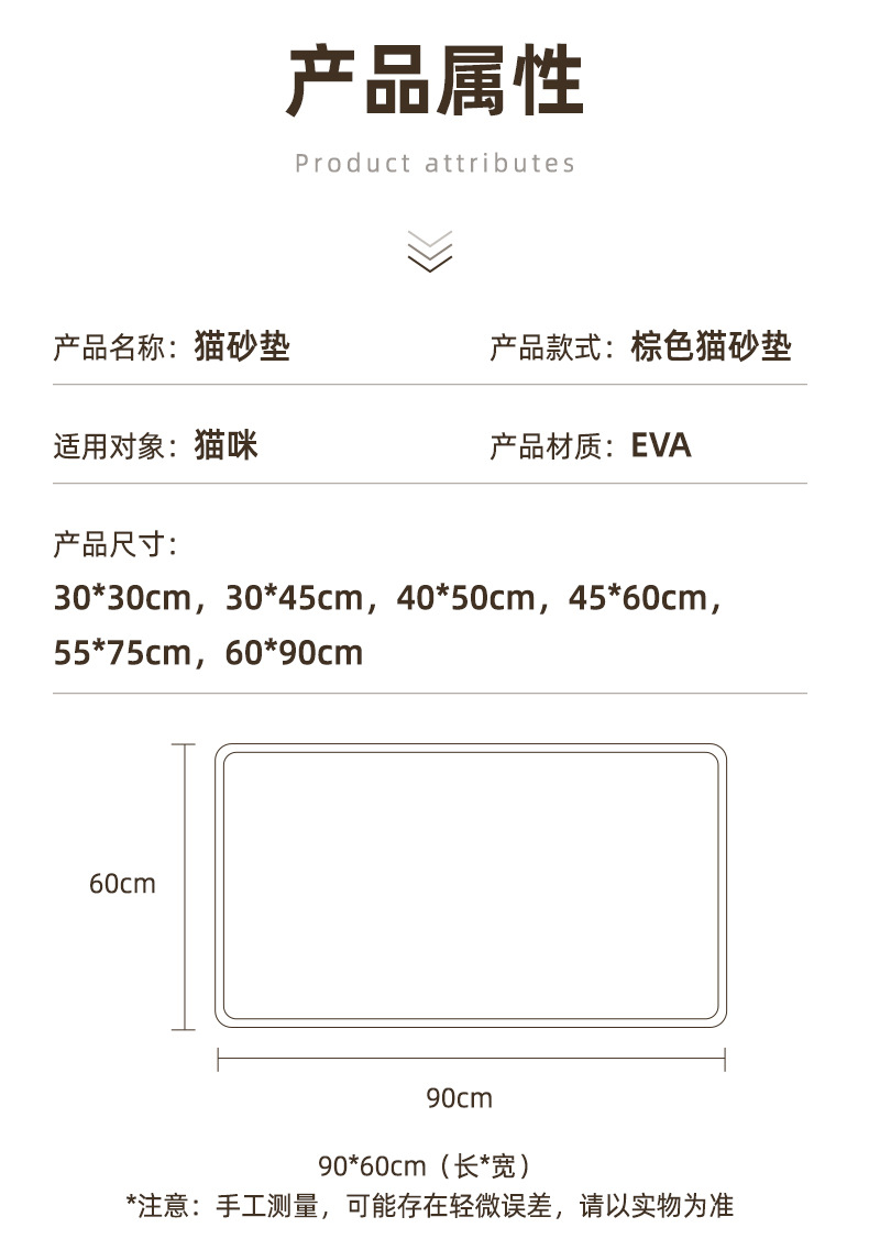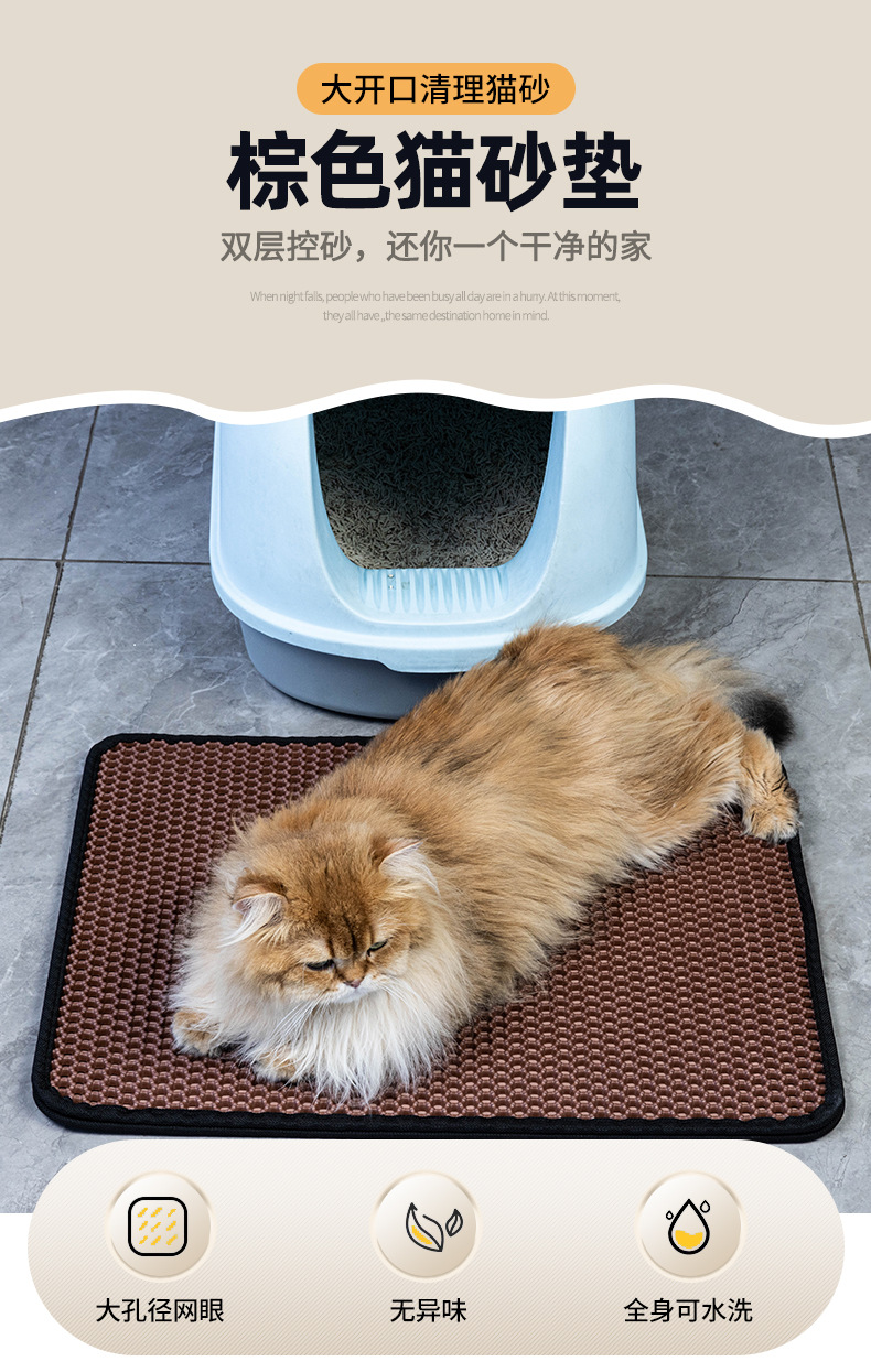 다크 브라운 고양이 쓰레기 매트 EVA 이중 층 빨 수있는 낙하 방지 모래 매트 안티 스플래시 안티-고양이 쓰레기 제어 매트 제조 업체스토어 가기