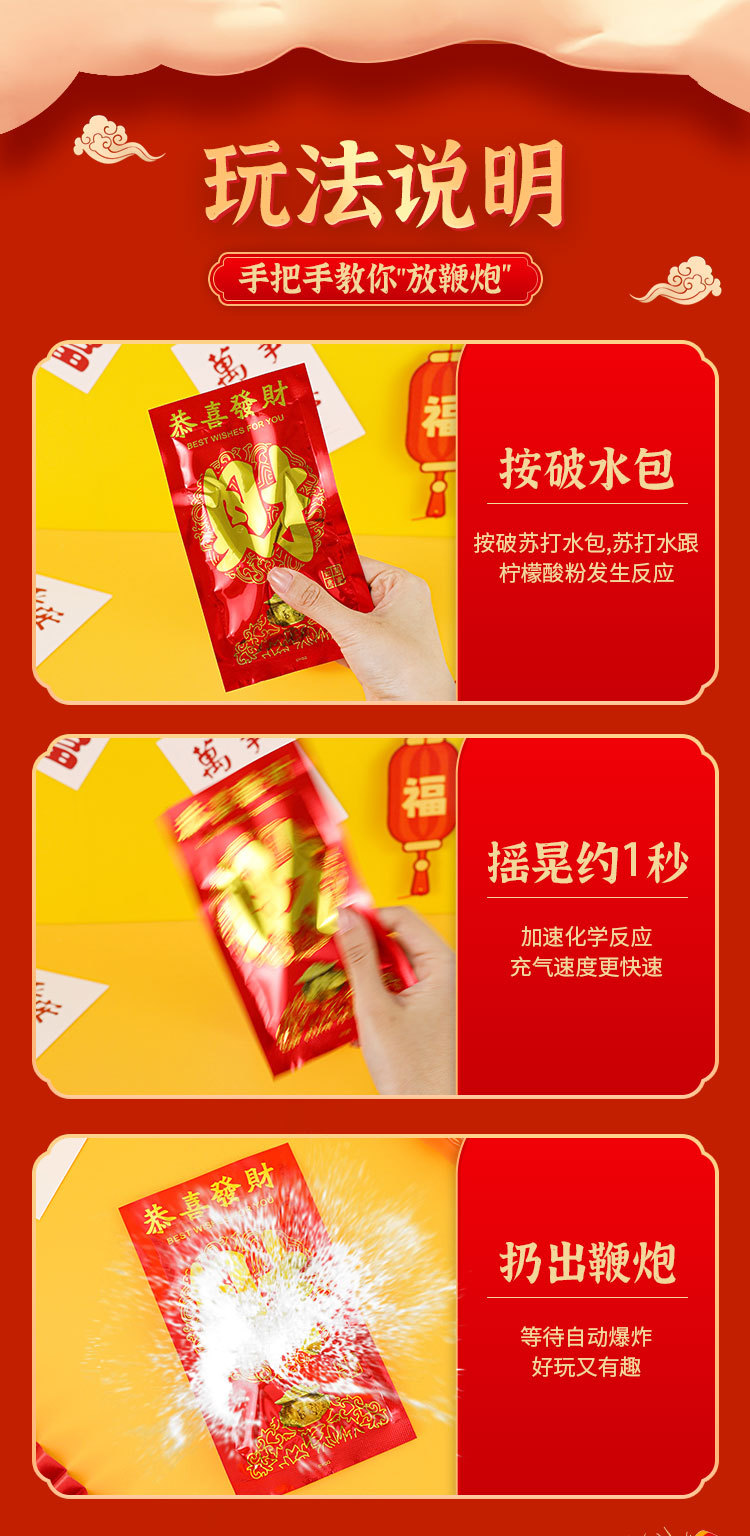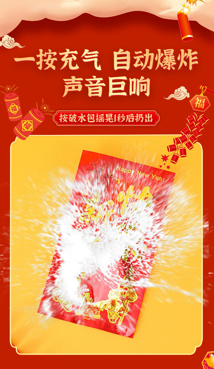 시뮬레이션 폭죽 풍선 [큰 소리] 새해 풍선 새해 첫날 빨간 봉투 폭죽 연인 친구 트릭