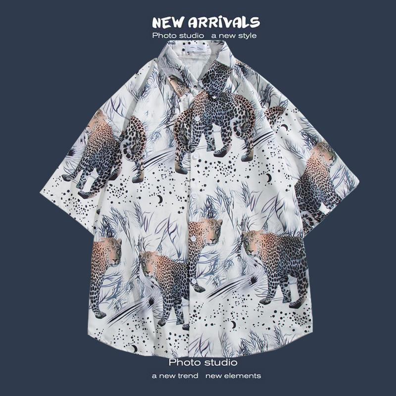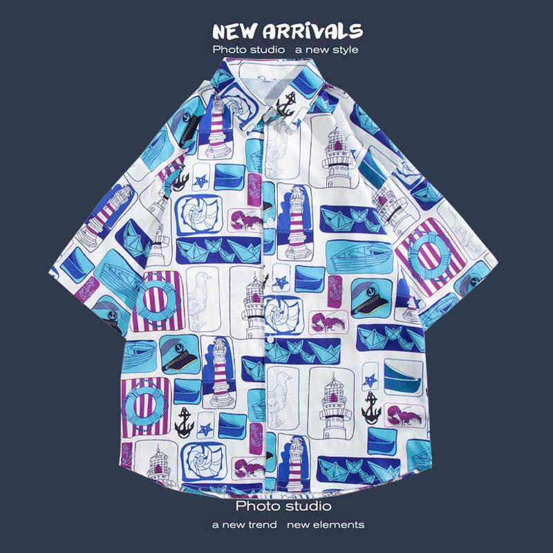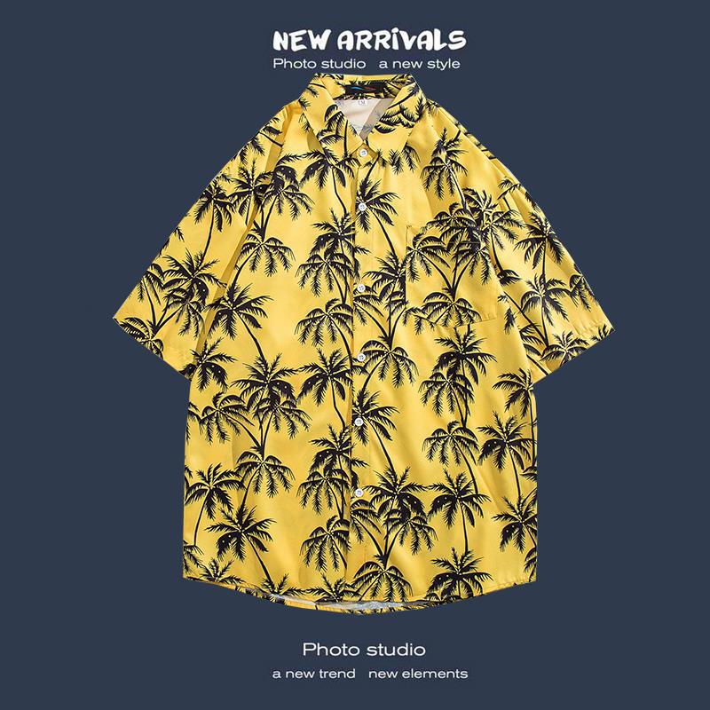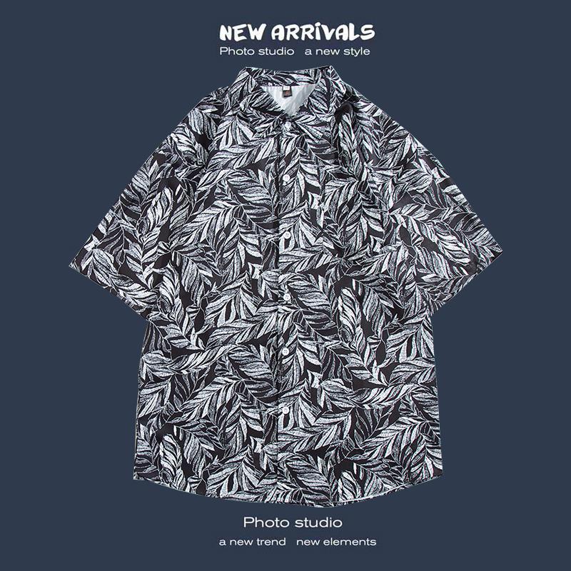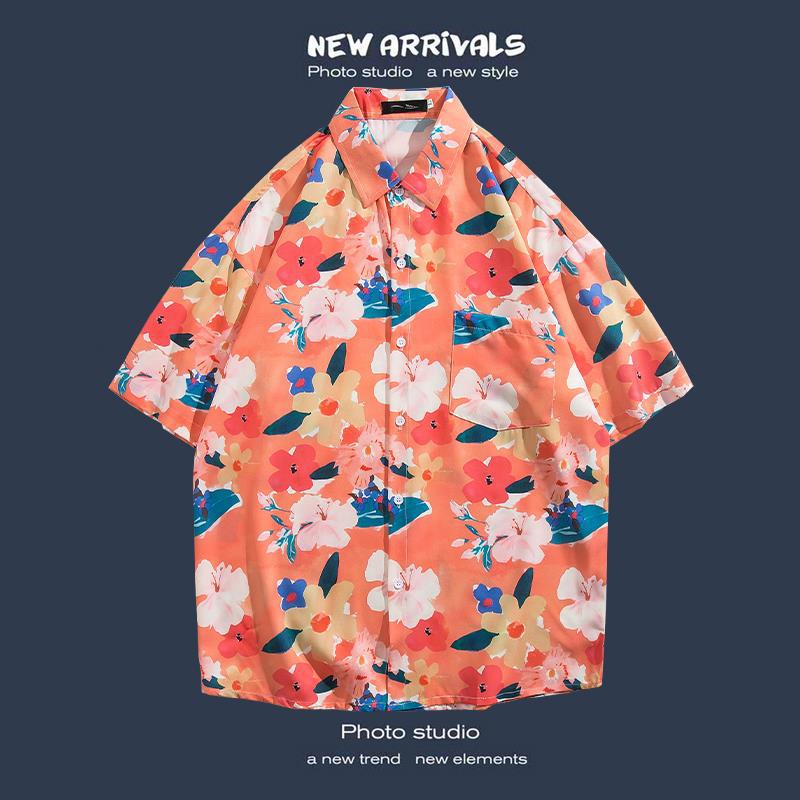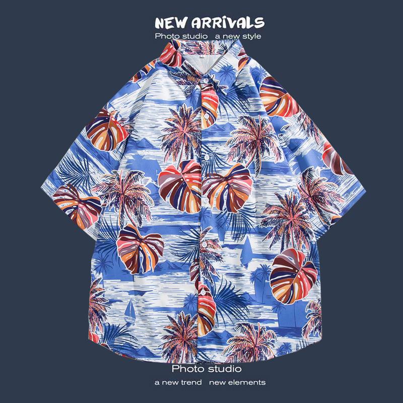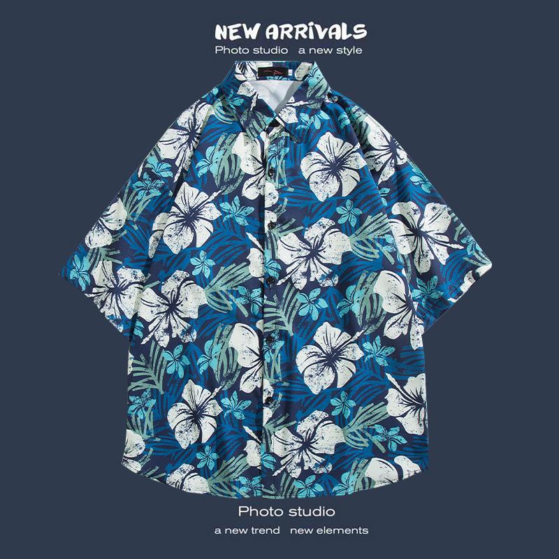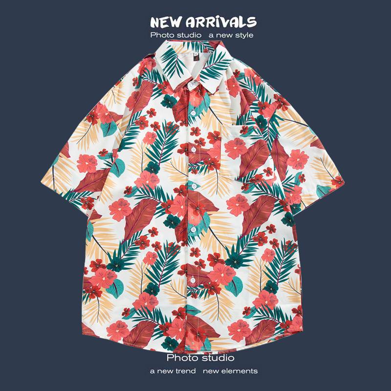 반팔 꽃무늬 셔츠 하이난 섬 해변 홍콩 스타일 싼야 샤웨이 스타일 태국 여행 남성 커플 캐주얼 루즈 재킷스토어 가기