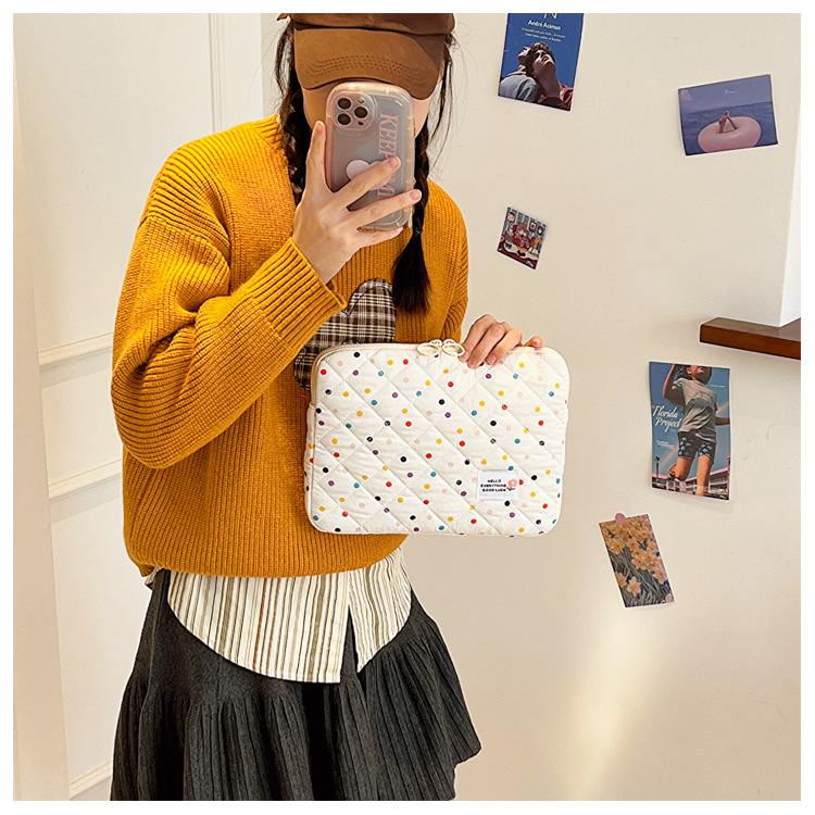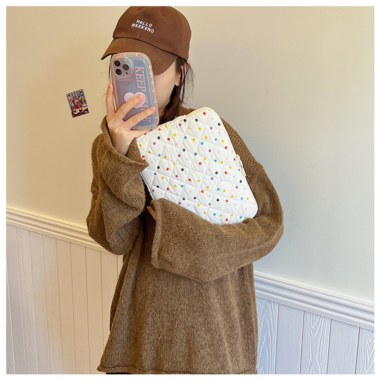 한국식 다채로운 폴카 도트 노트 노트북 보관 가방 여성용 휴대용 클러치 백 14/15.6 라이너 백