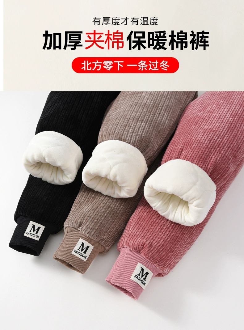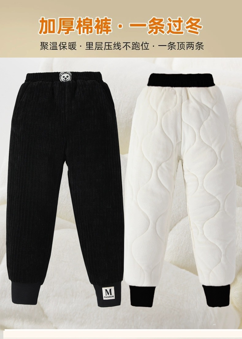 여자 소년 기모 바지 겨울 어린이 두꺼운면 바지 겉옷 3 층 퀼트 중형 및 대형 어린이 따뜻한 스포츠 바지스토어 가기