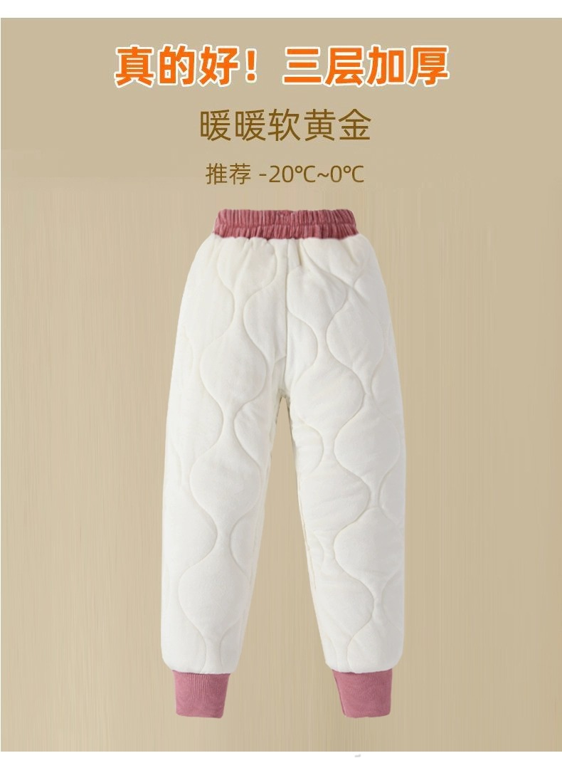 여자 소년 기모 바지 겨울 어린이 두꺼운면 바지 겉옷 3 층 퀼트 중형 및 대형 어린이 따뜻한 스포츠 바지