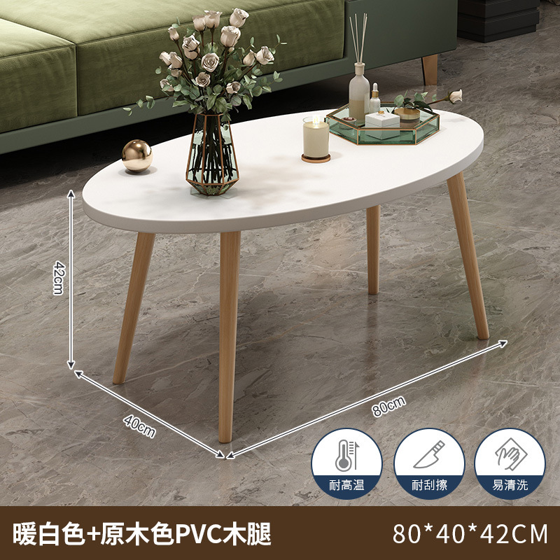• [타원형 더블 레이어] 따뜻한 흰색 + 나무 다리 80*40*42cm