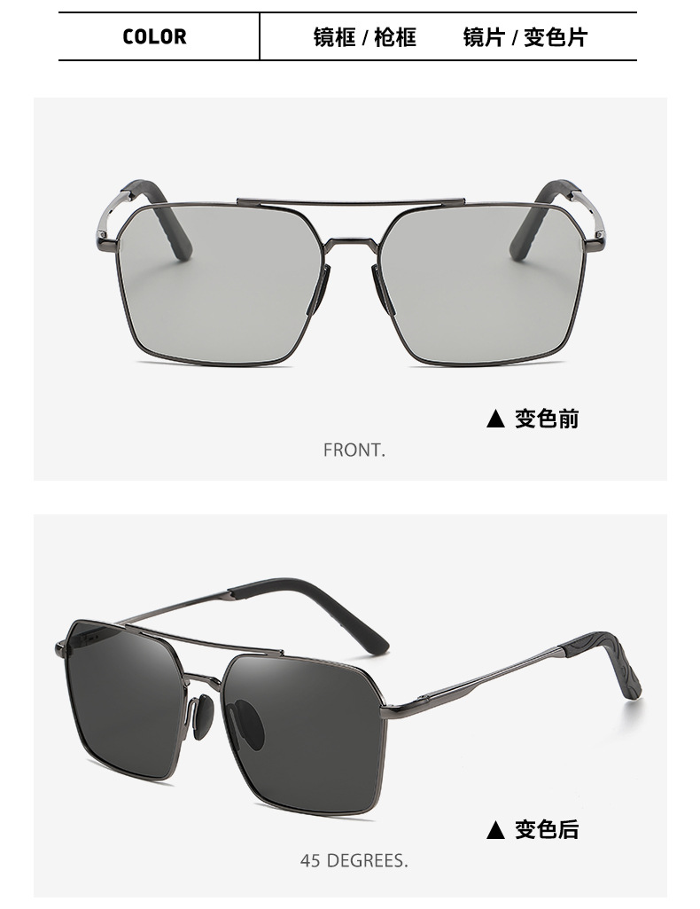 엄선된 메탈릭 고급 변색 편광 선글라스 남성용 풀프레임 운전용 자외선 차단 명품 선글라스