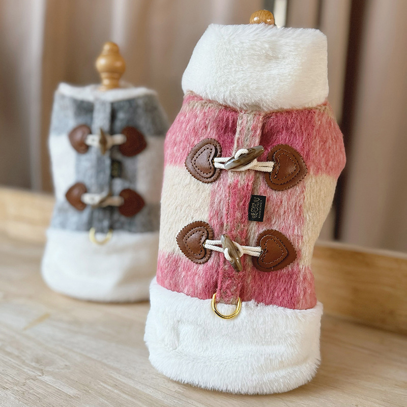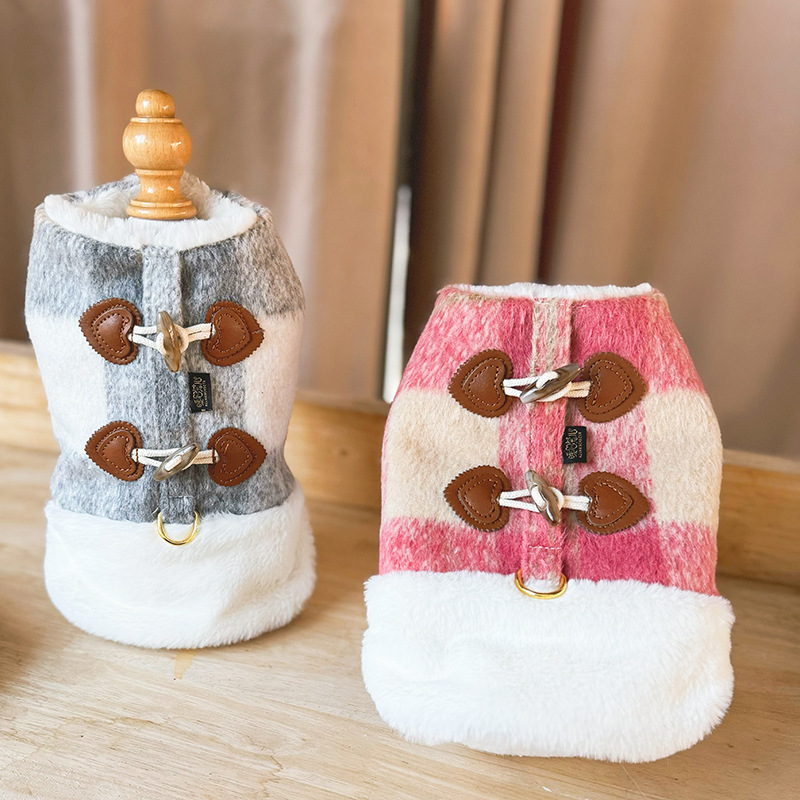 가을과 겨울 새로운 애완 동물 개 고양이 옷 따뜻한 경적 버클 모직 조끼 작은 개 옷 견인 반지