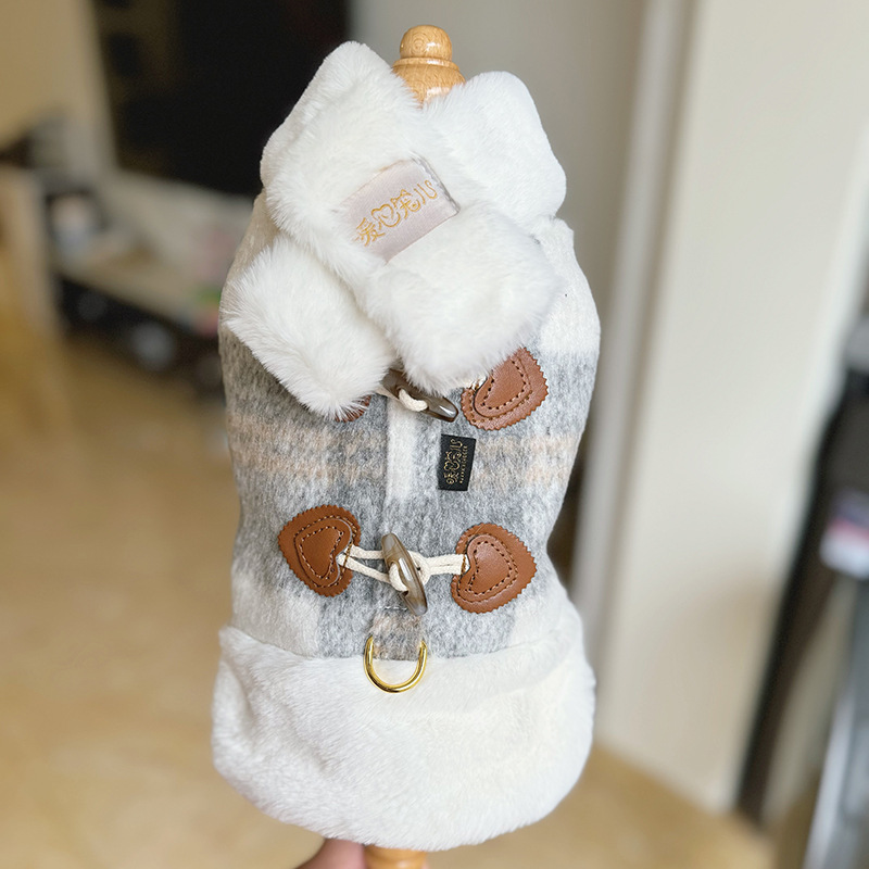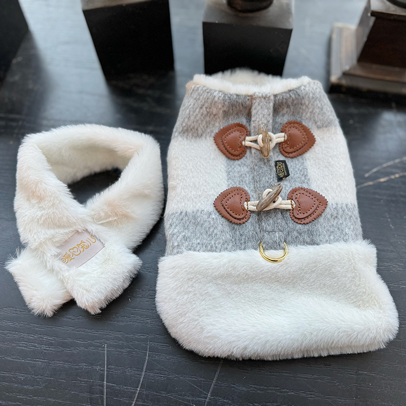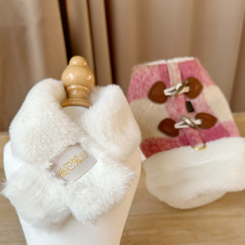 가을과 겨울 새로운 애완 동물 개 고양이 옷 따뜻한 경적 버클 모직 조끼 작은 개 옷 견인 반지스토어 가기