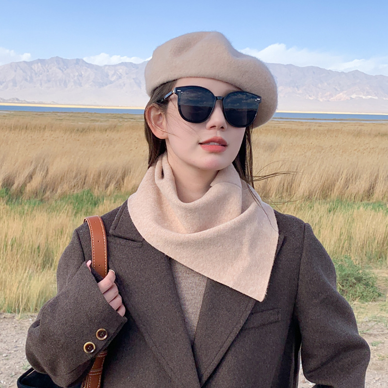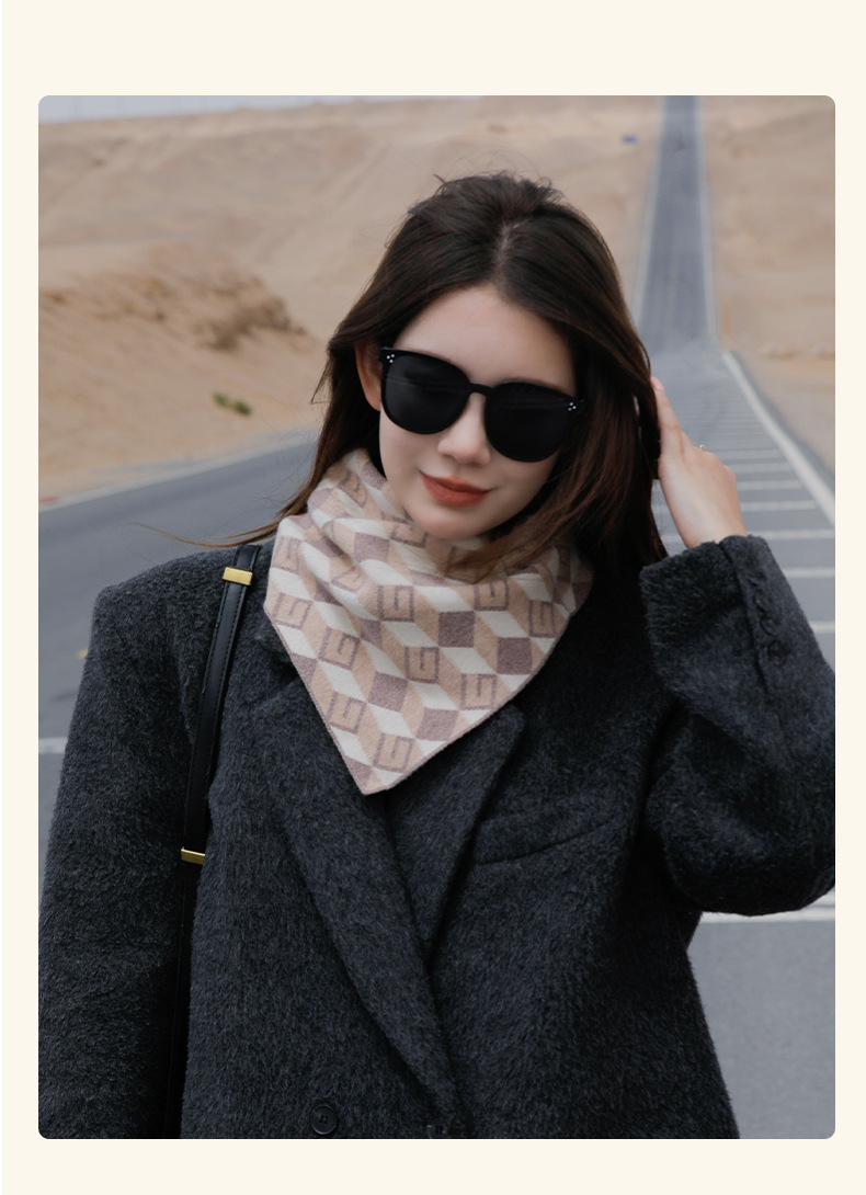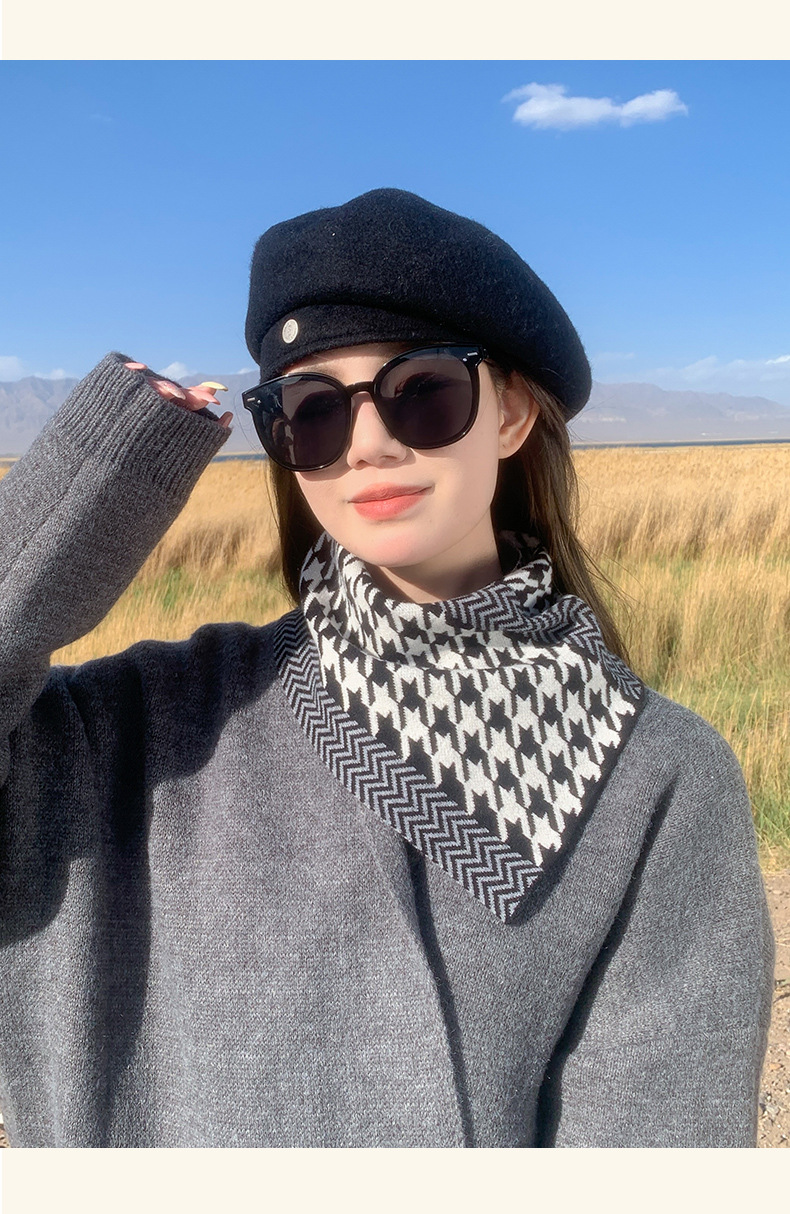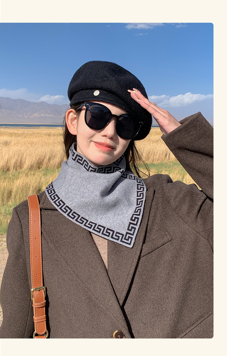 나이를 줄이는 격자 무늬 사이클링 방풍 풀오버 목 여성 목 보호 남성 가을 및 겨울 따뜻한 삼각형 목 세트 스카프