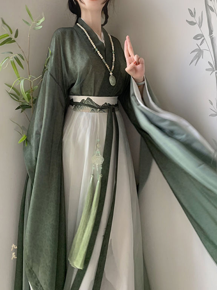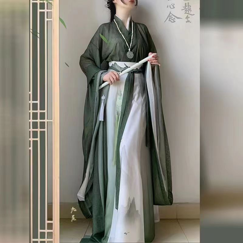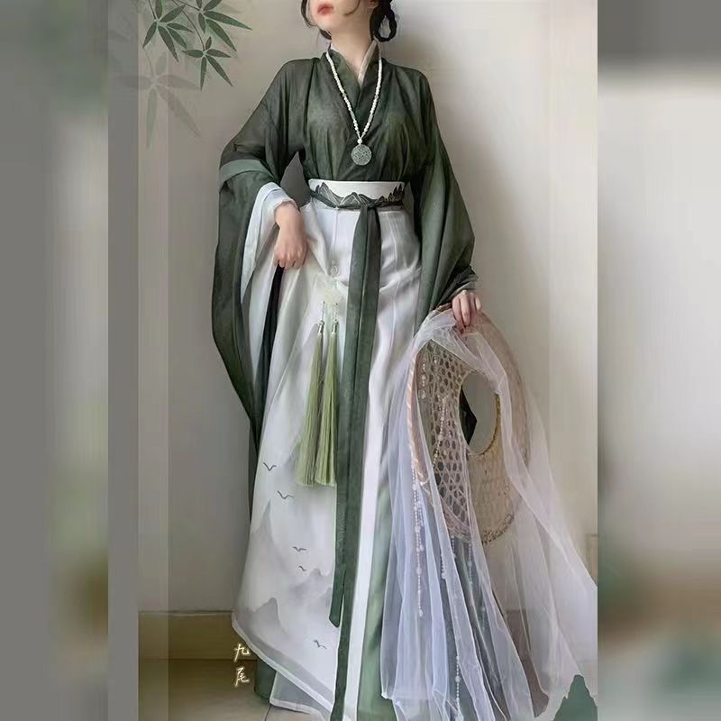 한푸 여성의 24 새로운 웨이와 진 스타일 인쇄 넓은 소매 중국 스타일 성인 가을과 겨울 세트 슈퍼 요정 고대 의상