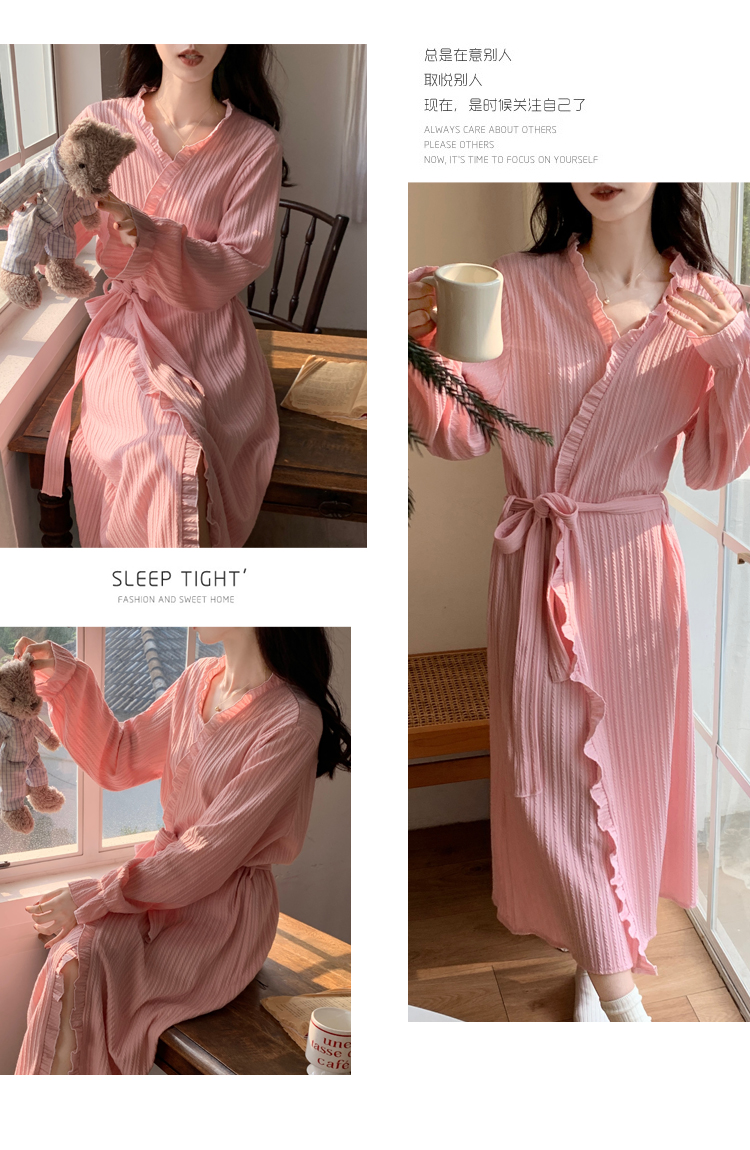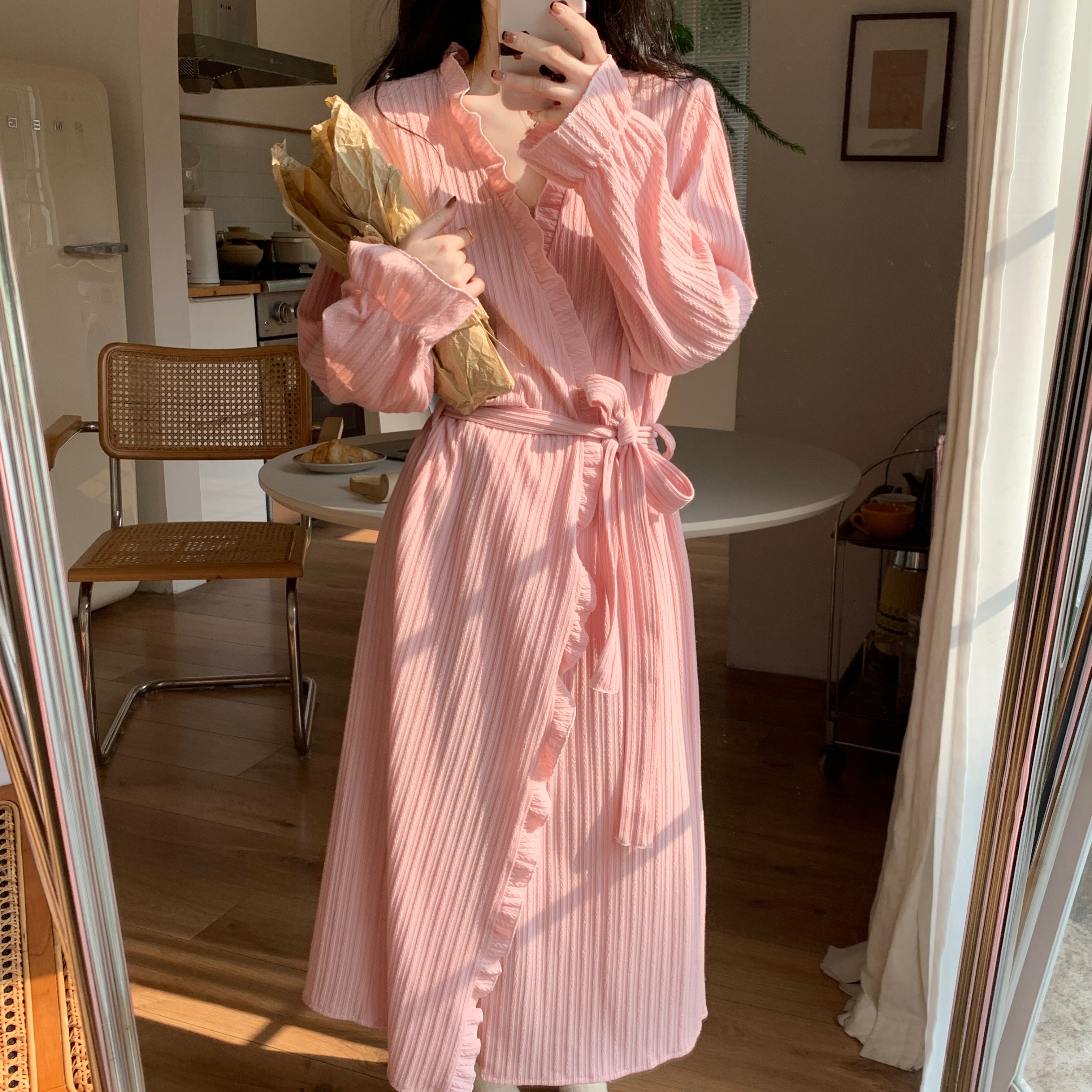 나이트 가운 여성 모닝 가운 봄, 가을, 겨울 코튼 스위트 레이스 업 목욕 가운 여름 얇은 홈웨어 잠옷스토어 가기