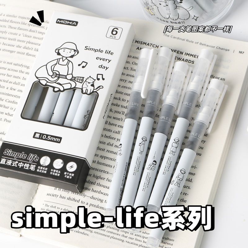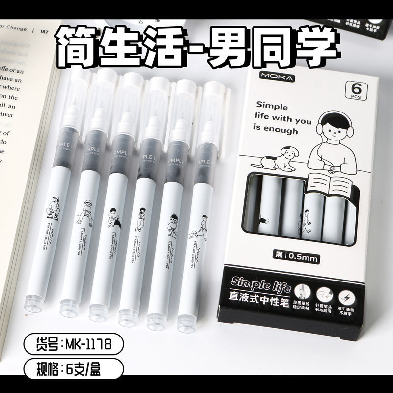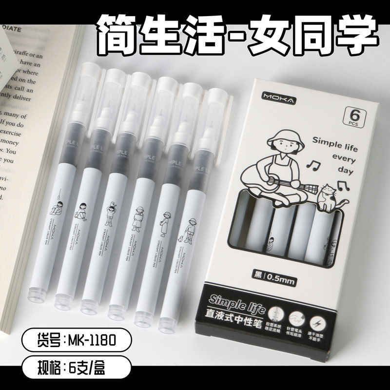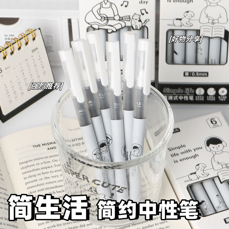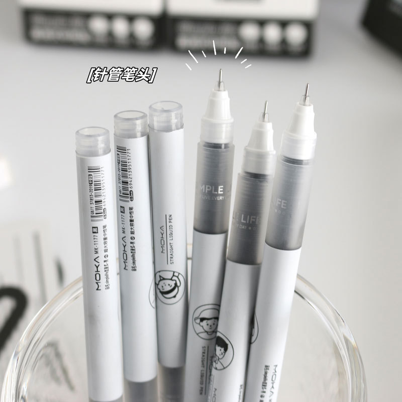 간단한 생활 스트레이트 젤 펜 귀여운 간단한 흑백 인 스타일 높은 모양의 브러시 펜 대용량 블랙스토어 가기