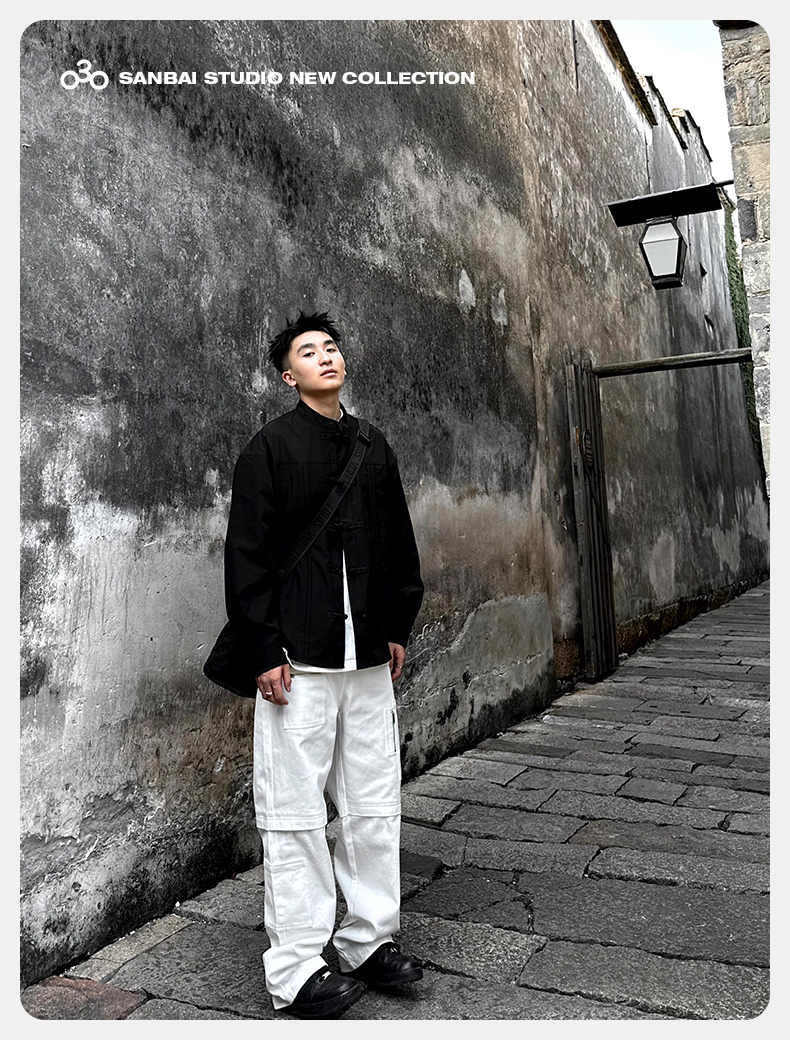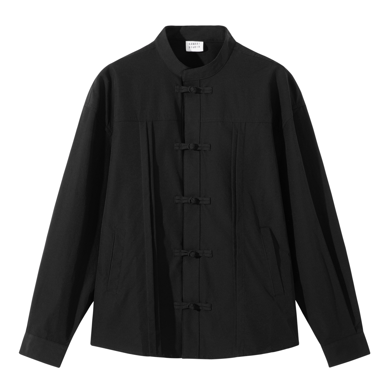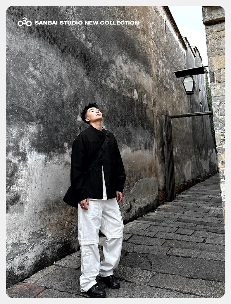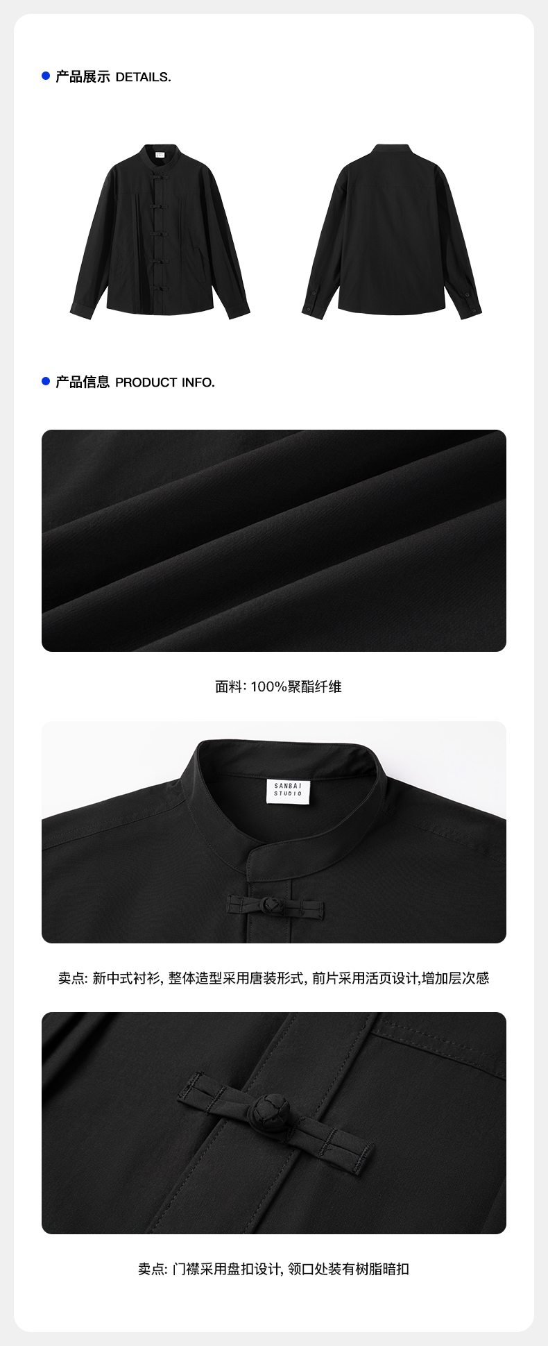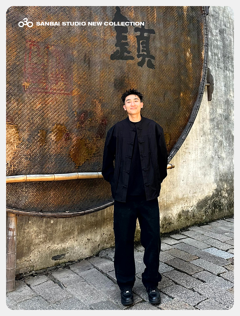 새로운 중국 스타일 탕 세트 셔츠 남성 가을 틈새 디자인 감각 버클 긴팔 셔츠 캐주얼 블랙스토어 가기