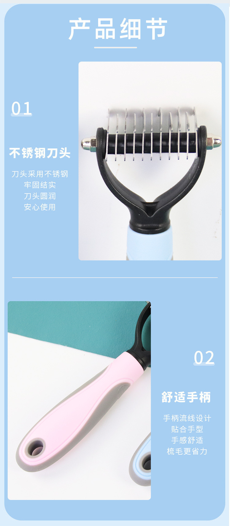 국경 간 뜨거운 판매 스테인레스 스틸 양면 오픈 매듭 빗 애완 동물 빗 고양이 빗 머리 제거 청소 애완 동물 빗 개 빗스토어 가기