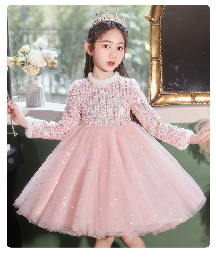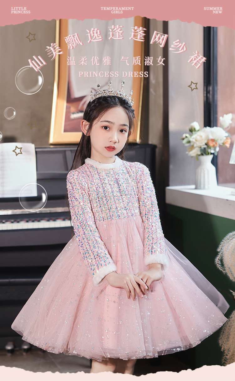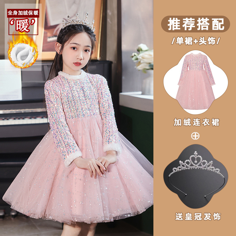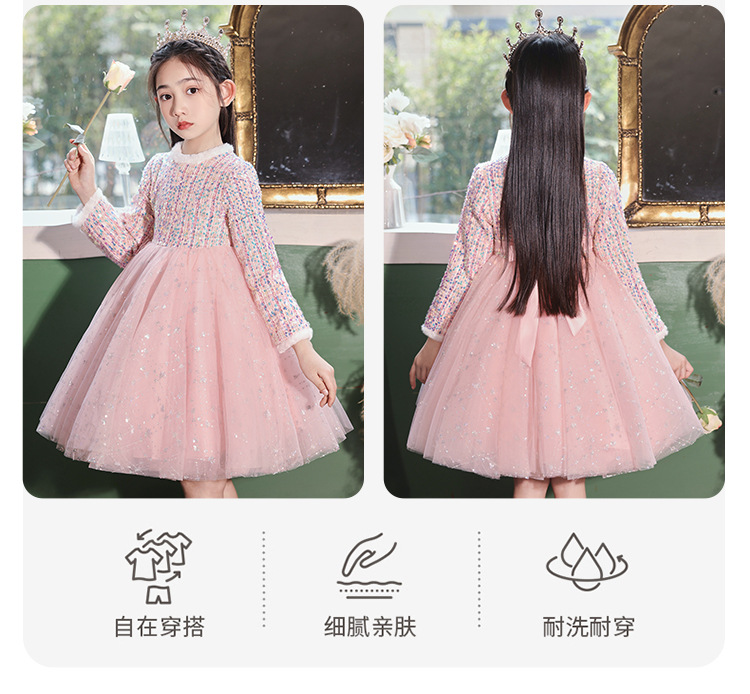 공주 치마 소녀의 가을과 겨울 2024 새로운 스타일 서양식 스커트 어린이 원피스 원피스 어린 소녀의 겨울 치마 기모 두껍게스토어 가기
