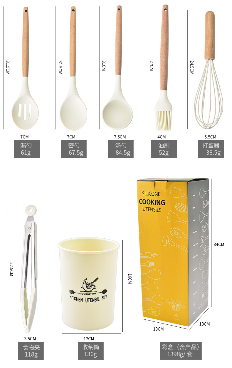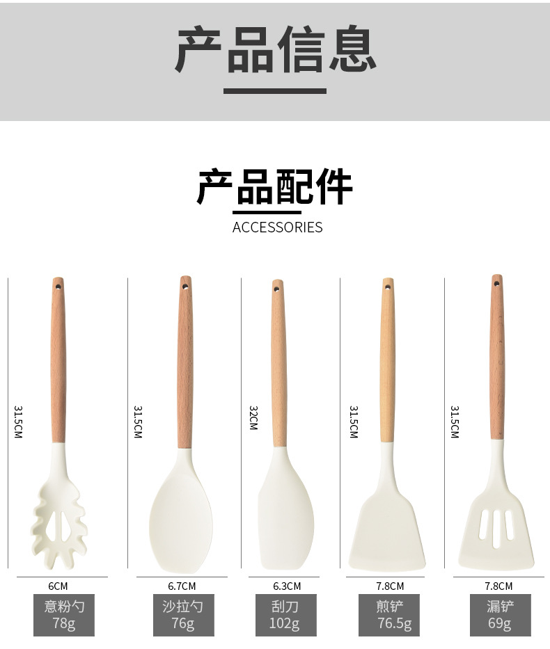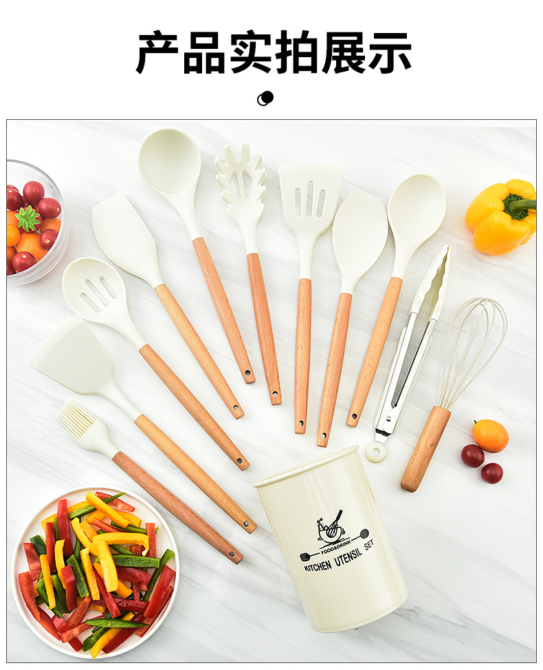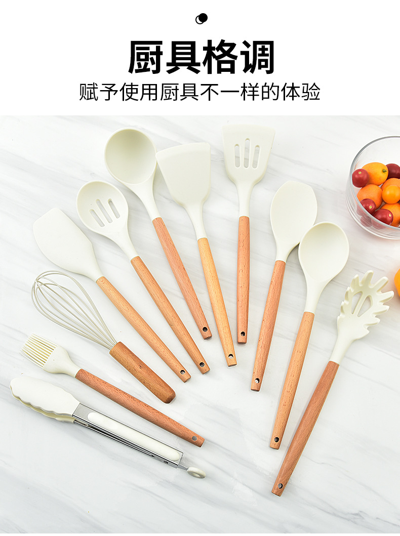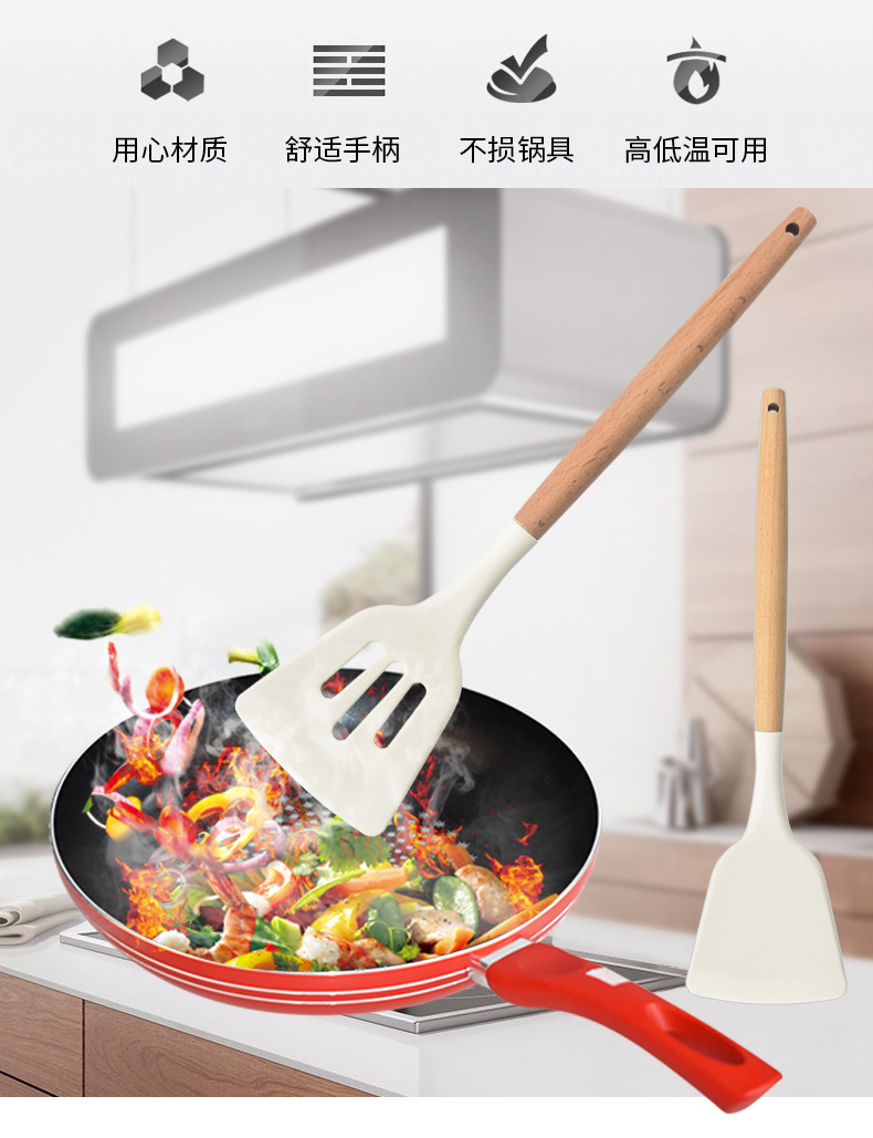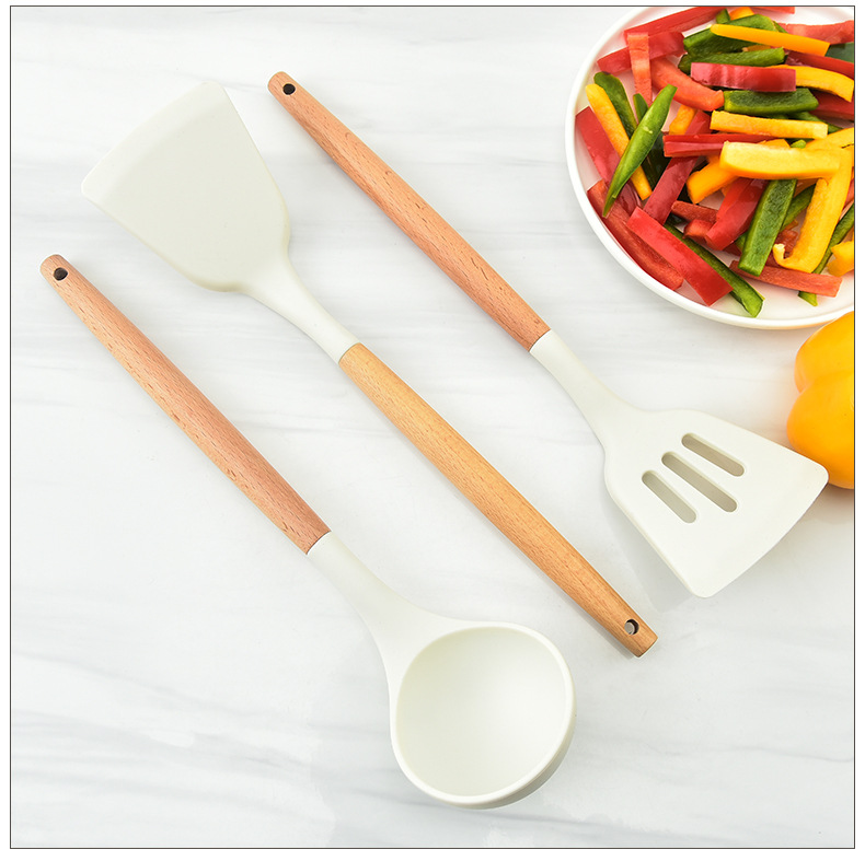 실리콘 주걱 3 조각 요리 숟가락 주걱 주방 용품 수프 숟가락 소쿠리 주걱 주방 도구 너도밤 나무 실리콘 주걱