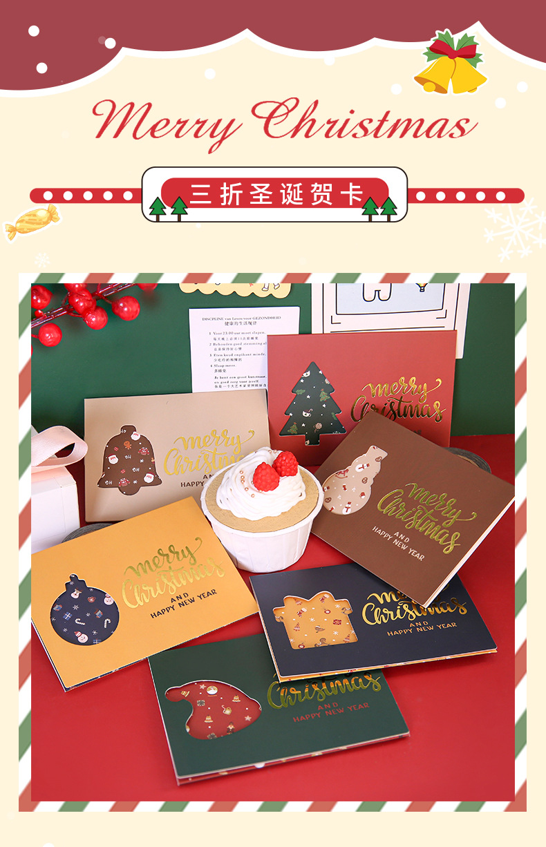 트라이 폴드 크리스마스 인사말 카드 창조적 인 간단한 크리스마스 이브 축복 추수 감사절 메시지 카드 빈 작은 카드 감사 카드 선물스토어 가기