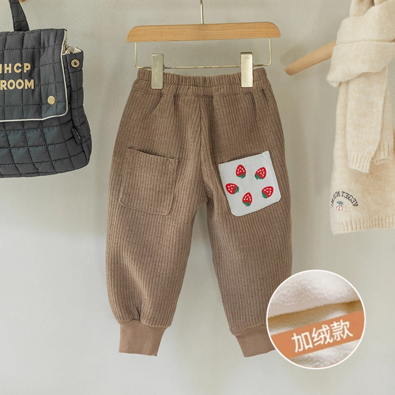 기모 바지 어린이 겨울 2023 새로운 어린이 코듀로이 바지 겉옷 가을과 겨울 아동복 원피스 벨벳 스포츠 바지