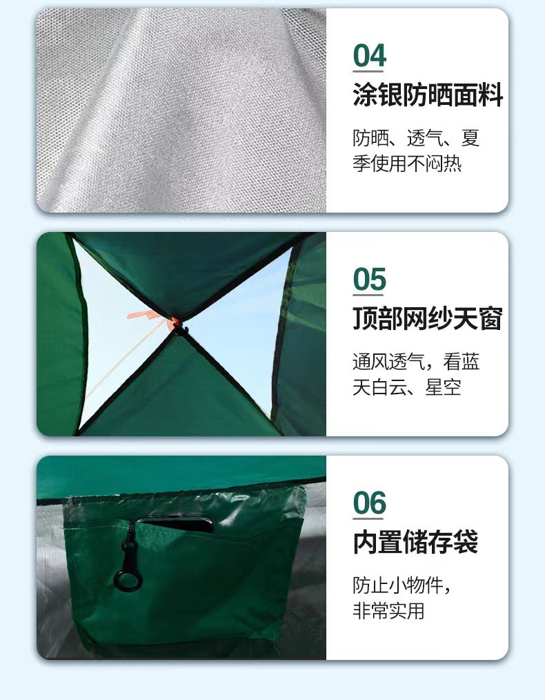 • 업그레이드된 중형 더블 *실버 테이프*양문 + 양면창 + 채광창 [짙은 녹색]