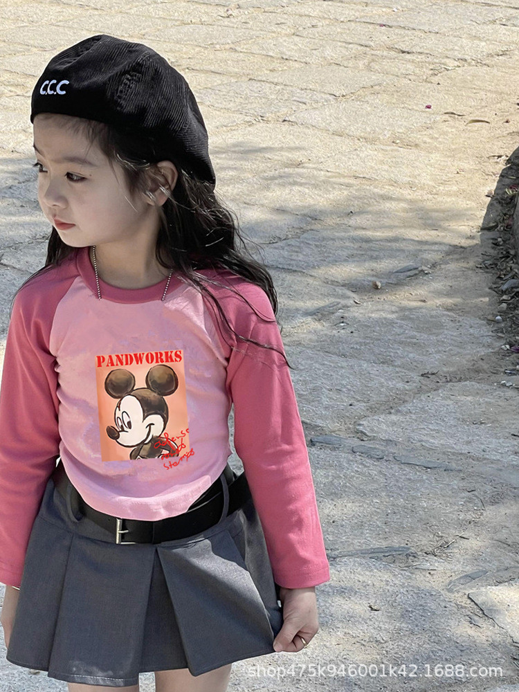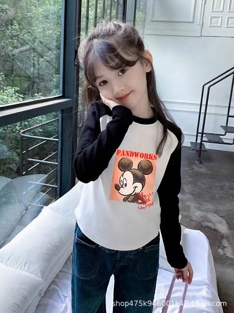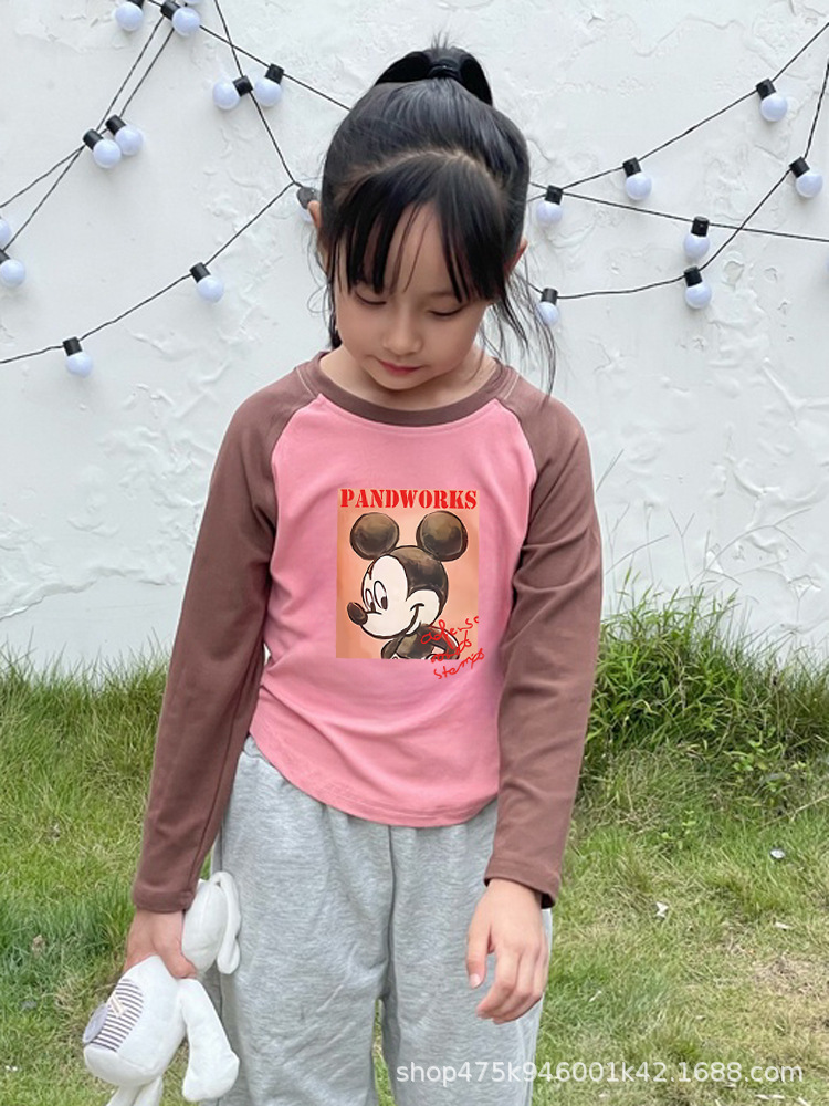 공장 도매 소녀 만화 미키 코튼 긴팔 티셔츠 봄과 가을 아동복 소녀의 슬림 핏 짧은 탑스토어 가기