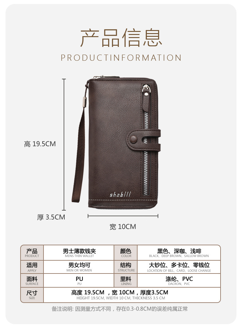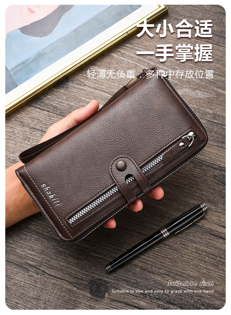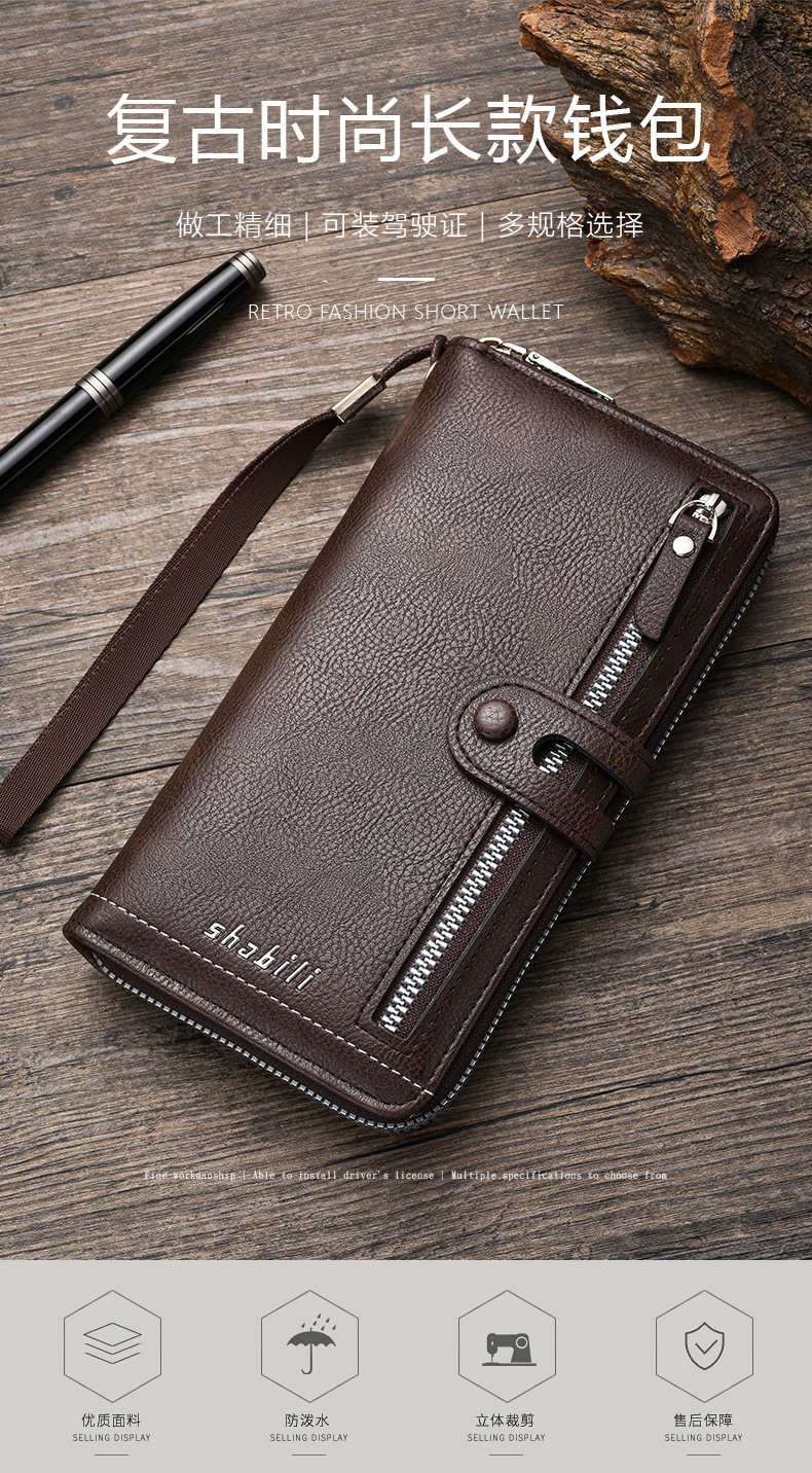 국경 간 새로운 남성 긴 지갑 지퍼 멀티 카드 캐주얼 대용량 모바일 지갑 클러치 백 동전 지갑스토어 가기